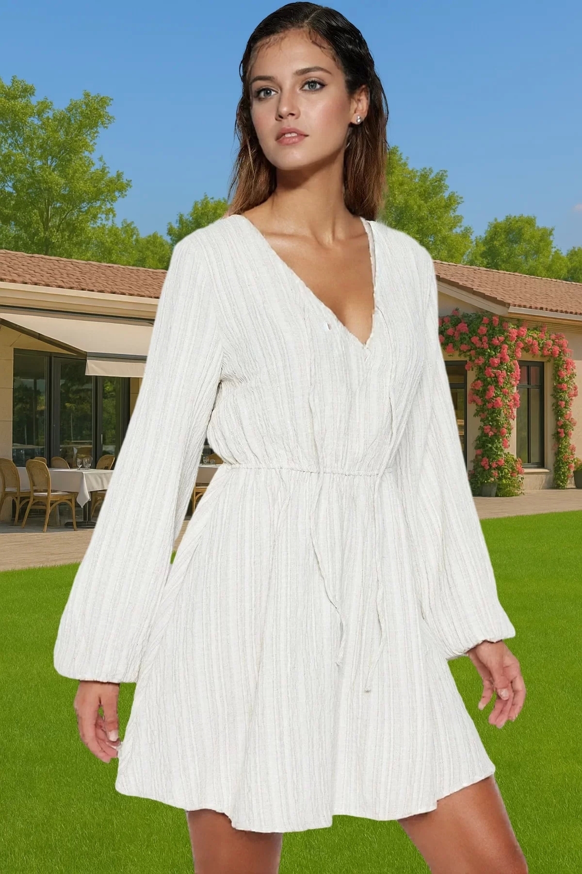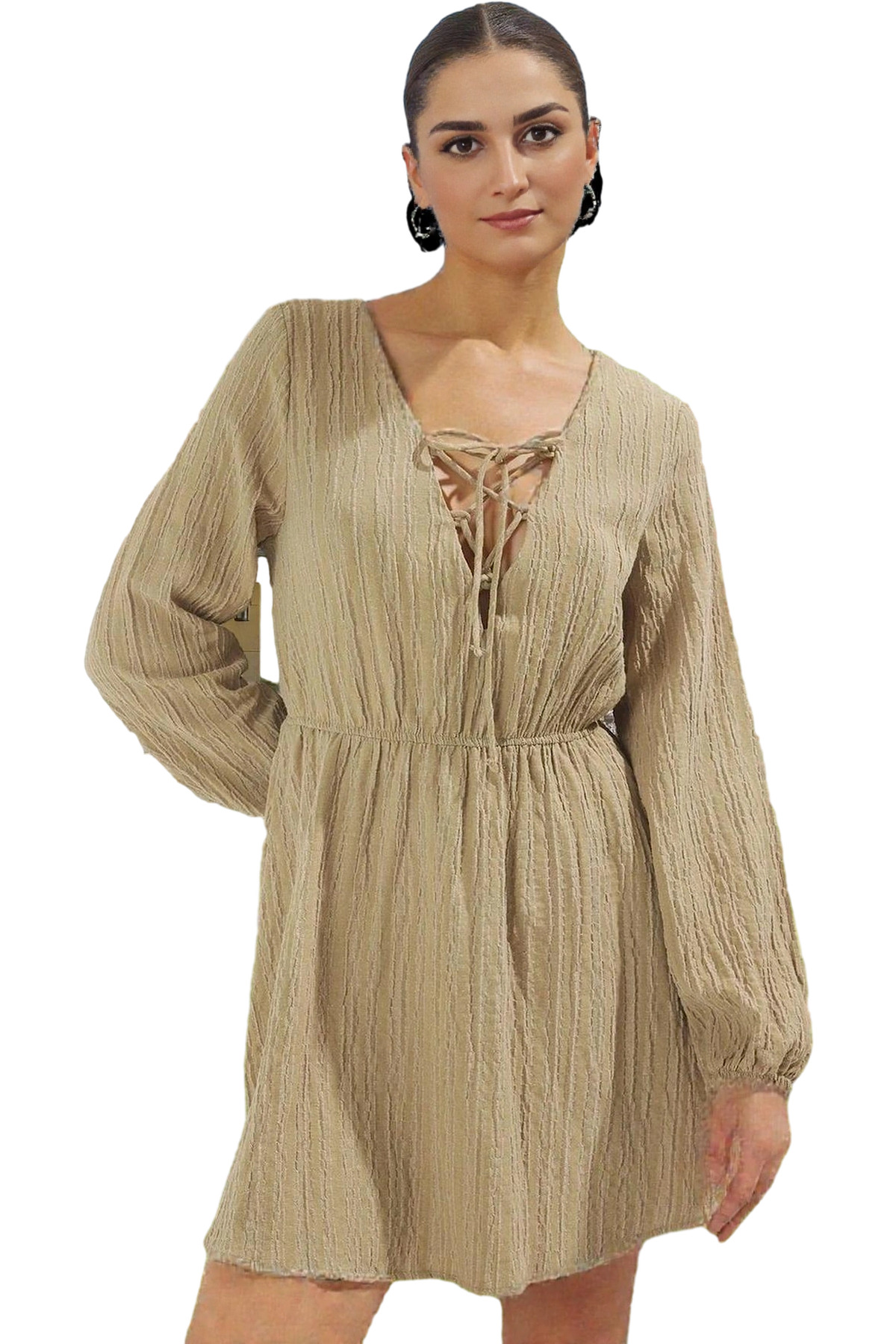 Yazlık Mini Keten Karışımlı Bağlamalı Plaj Elbisesi Rahat Kesim Premium Kalite Mükemmel Uyum