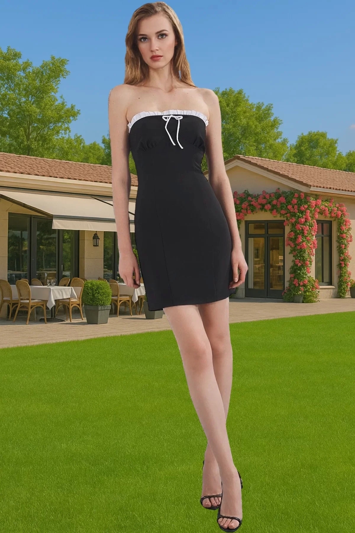 Yazlık Mini Straplez Abiye Elbise Polyester Elastan Dokuma Kumaş Premium Kalite Kaliteli İşçilik