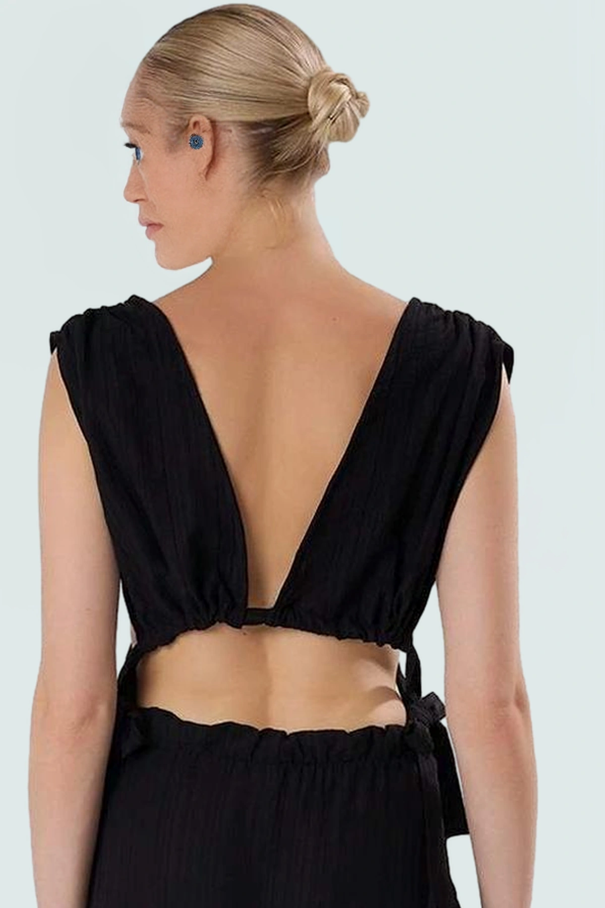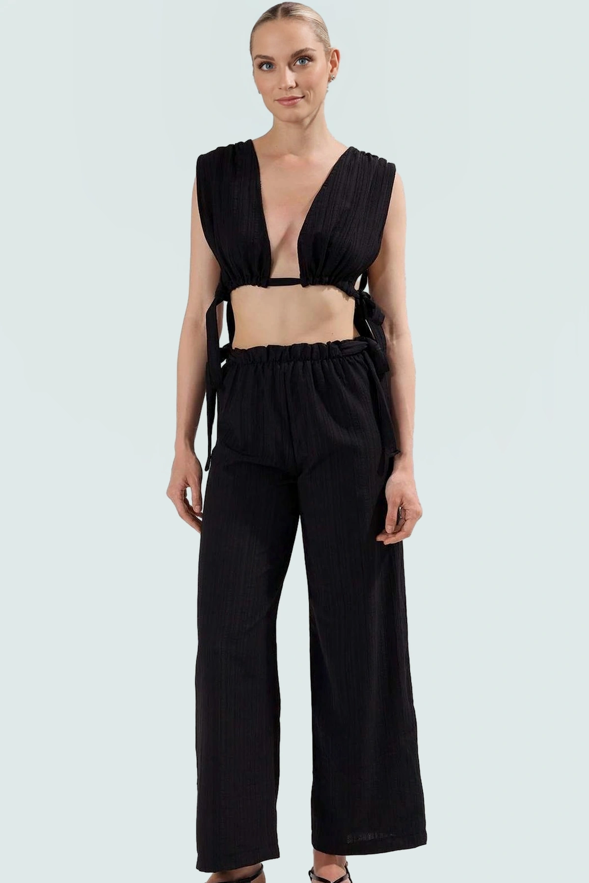 Yazlık Pamuklu Bluz Pantolon Takım Bağlama Detaylı Rahat Kalıp Nefes Alan Kumaş Modern Stil