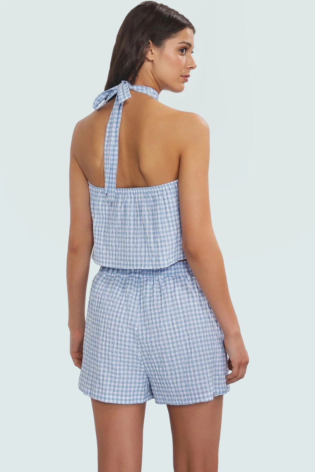 Rahatlığı ve şıklığı bir arada arayanlar için ideal bir yazlık takım! Mavi ekose desen, yazın enerjisini yansıtırken, %61 pamuk, %38 polyester ve %1 elastan karışımı hafif ve nefes alabilir bir yapı sunuyor. Gofre dokuma tekniği, takımın dokusuna ve şıklığınıza ayrı bir hava katıyor. Oversize kalıbıyla her vücut tipine uyum sağlayan bu takım, kolsuz bluzu ve kısa şortuyla gün boyu rahat hareket etmenizi sağlar. Balıkçı yakası, takımın şıklığını tamamlarken, astarsız yapısı yazın sıcak günlerinde serin kalmanıza yardımcı olur. Makinede 35 derecede kolayca yıkayabilirsiniz. Şıklığı ve rahatlığıyla plaj günlerinizin, havuz partilerinizin ve yaz akşamlarınızın vazgeçilmez parçası olacak.