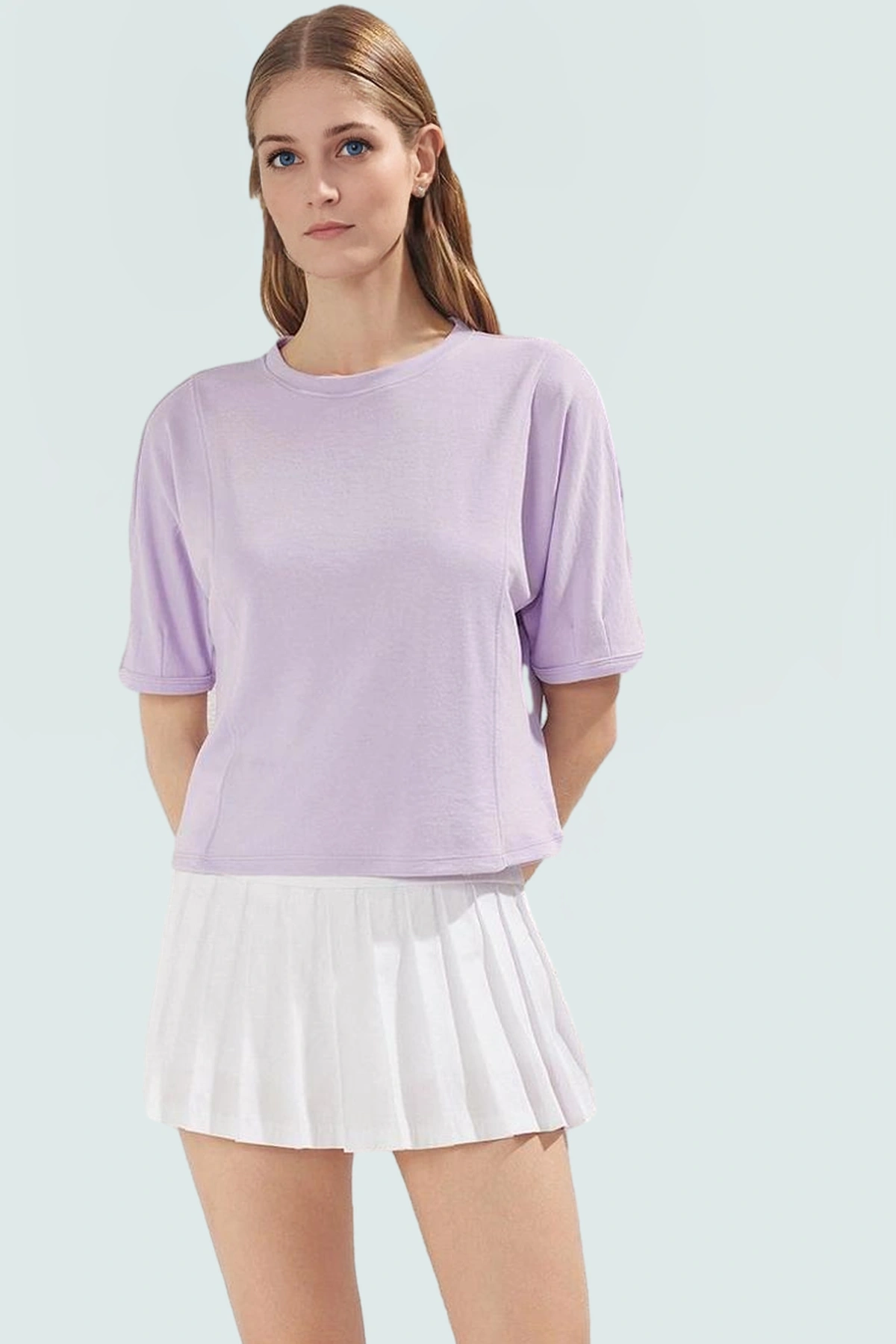 Mor rengin enerjisiyle stilinize canlılık katın. Bu çok yönlü bluzu, şort, etek, tayt veya pantolonlarla kombinleyerek kendi tarzınızı yaratabilirsiniz. Alışverişe giderken, arkadaşlarınızla buluşurken veya evde rahatlamak istediğinizde bu bluz sizin en iyi arkadaşınız olacak.