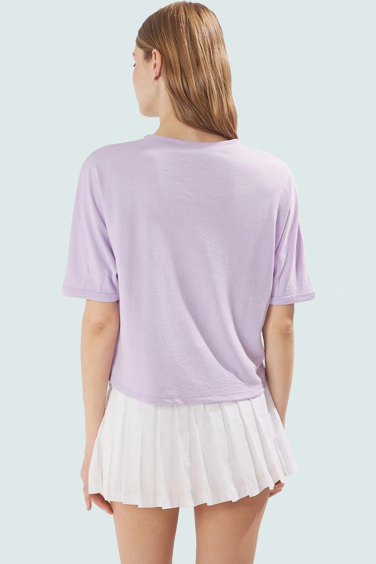 Sıcak yaz günlerinde serin ve şık görünmenizi sağlayacak bu mor crop bluz, benzersiz scuba kumaş dokusuyla dikkat çekiyor. Bisiklet yakası ve düşük kolları ile rahat bir kullanım sunarken, regular kalıbı sayesinde her vücut tipine uyum sağlıyor. %50 polyester ve %50 viskoz karışımı olan yumuşak scuba kumaş, nefes alabilir yapısıyla gün boyu konforlu hissetmenizi garantiliyor. Crop boyu, modern ve tarz bir görünüm yaratırken, düz desen ile her türlü alt parçayla kolayca kombinlenebilir.