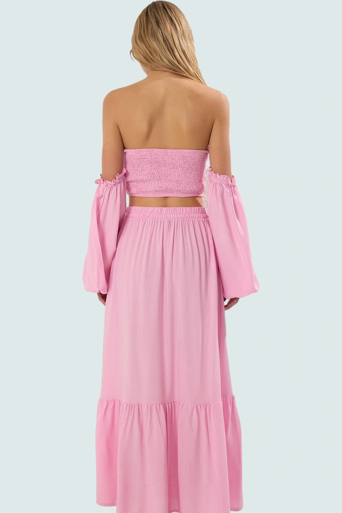 Bu yaz, stilinizi benzersiz bir şekilde yansıtın! Pembe, şal desenli, uzun boylu ve balon kollu viskoz bluz etek takımımızla hem şık hem rahat olun. Dokuma kumaşın hafifliği ve nefes alabilirliği, yaz sıcağında bile konforlu hissetmenizi sağlar. Oversize kalıbı ile rahat hareket edebilir, gün boyu kendinizi özgür hissedebilirsiniz. Plajda, şehirde, akşam yemeğinde; her yerde göz kamaştırın.