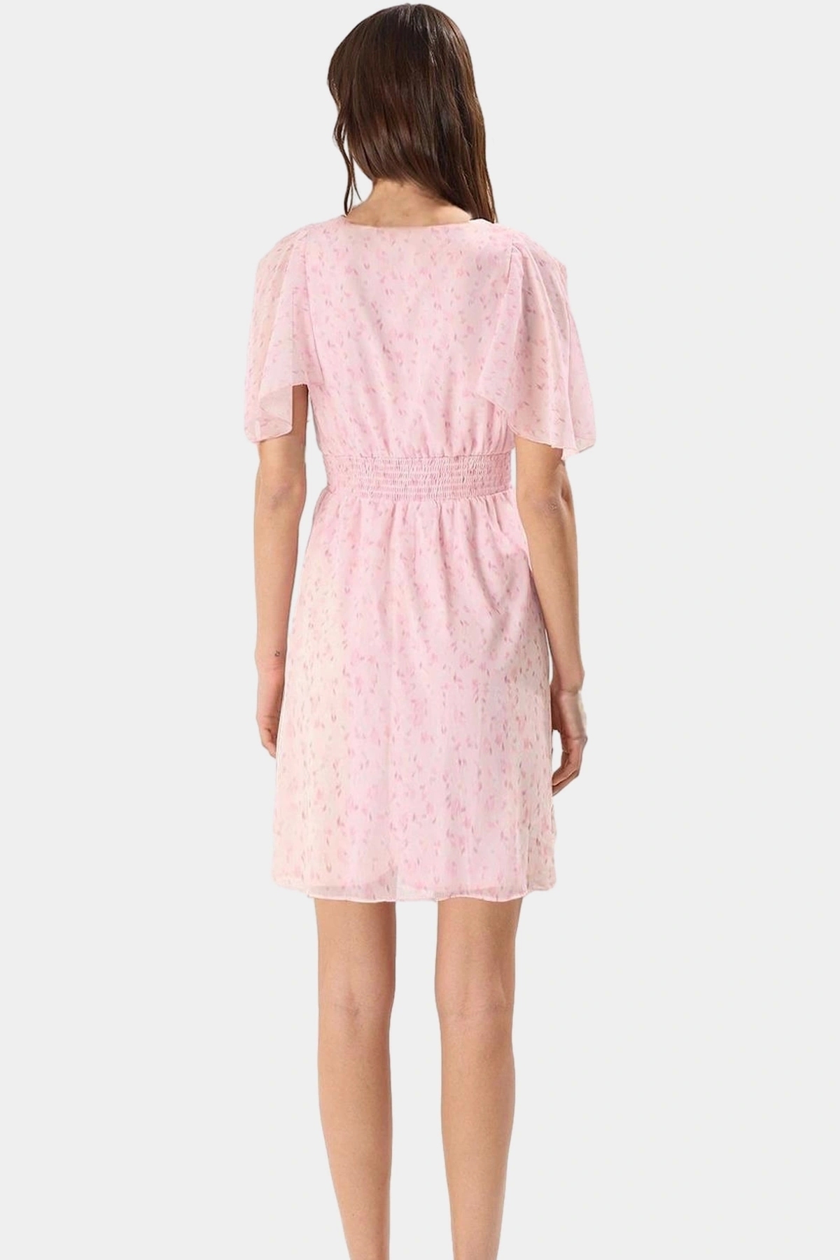 Yazlık Şifon Mini Elbise V Yaka Melek Kol Skater Kalıp Çiçek Desenli Zarifane Tasarım