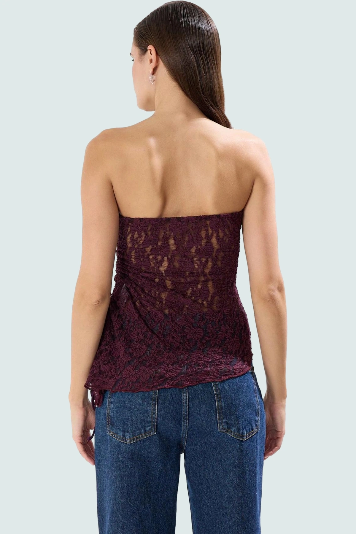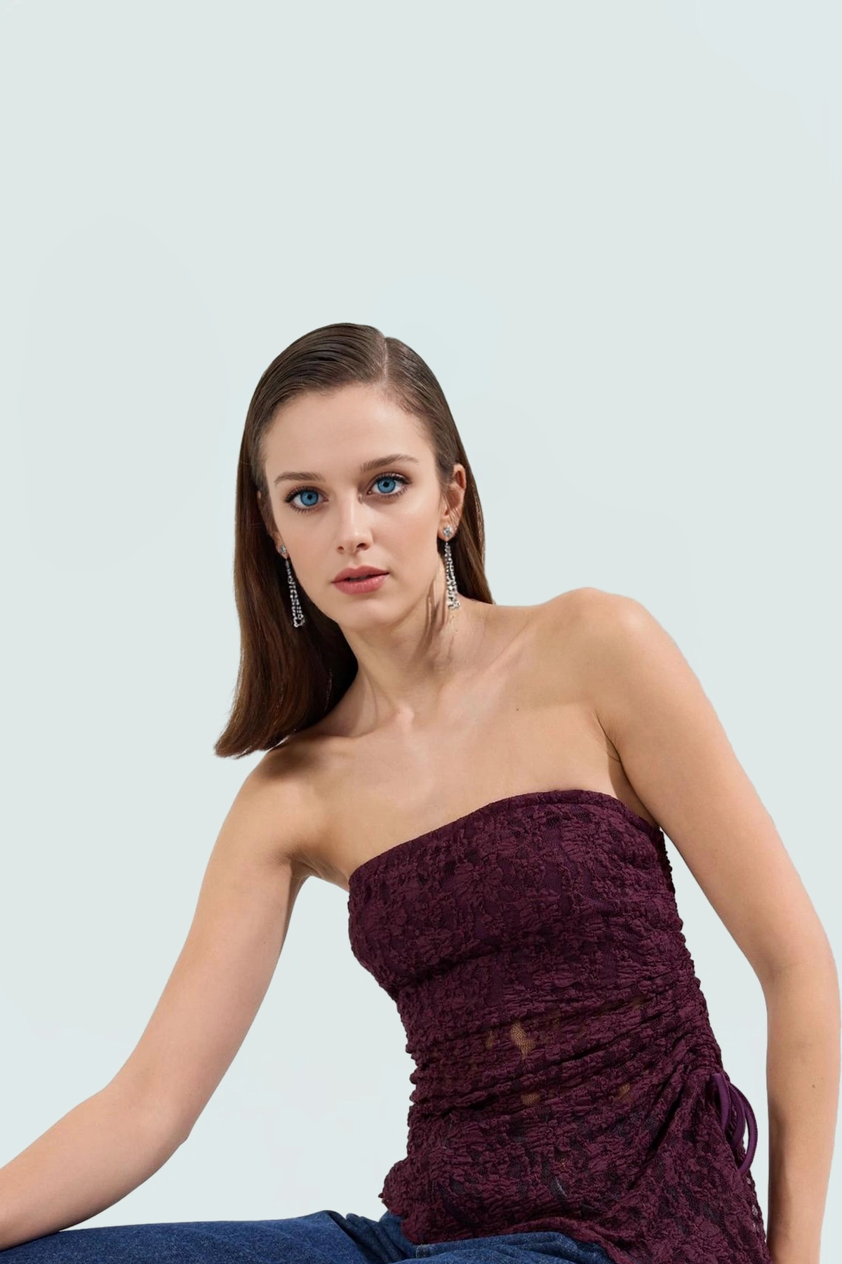 Bu muhteşem bordo bluz, yaz akşamlarının gözdesi olacak! Straplez ve fitted kalıbıyla vücut hatlarınızı mükemmel şekilde sergilerken, ince danteliyle de feminen bir hava katıyor. Yüksek kaliteli polyester ve elastan karışımı kumaştan üretilen bluz, nefes alabilir ve konforludur. Gün boyu rahatlık sağlarken, şık görünümünüzü de koruyacaksınız. Özel tasarım detaylarıyla dikkat çeken bu bluz, her türlü özel davete veya gece dışarı çıkışınıza mükemmel bir uyum sağlayacak. Siz de bu şık ve rahat bluzu deneyimleyin!