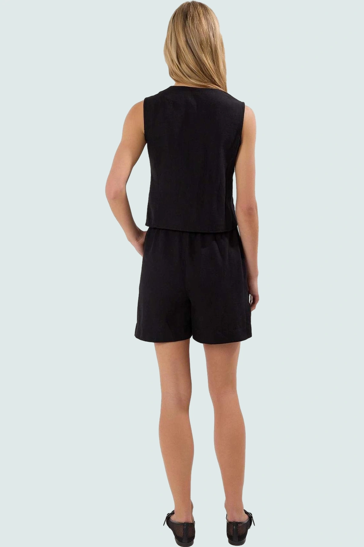 Yazın sıcağında hem şık hem de rahat olmak mı istiyorsunuz? Bu siyah keten görünümlü bluz ve şort takımı tam size göre! Yüksek kaliteli pamuktan üretilen bu takım, nefes alan yapısıyla gün boyu konfor sunuyor. Bluzun bağlamalı detayı ve yüksek bel şortun modern kesimi, benzersiz tarzınızı ortaya koymanıza yardımcı olacak. Kısa ve mini boy şort, hareket özgürlüğü sağlarken, keten görünümlü dokuma kumaşıyla şık bir görünüm elde edersiniz. Kolay bakım özelliği sayesinde, makinede yıkayabilirsiniz. Modelin ölçüleri: Boy:178 cm, Göğüs:79 cm, Bel:59 cm, Kalça:92 cm. Manken S beden giymektedir. Ürün boyu 55 cm’dir.