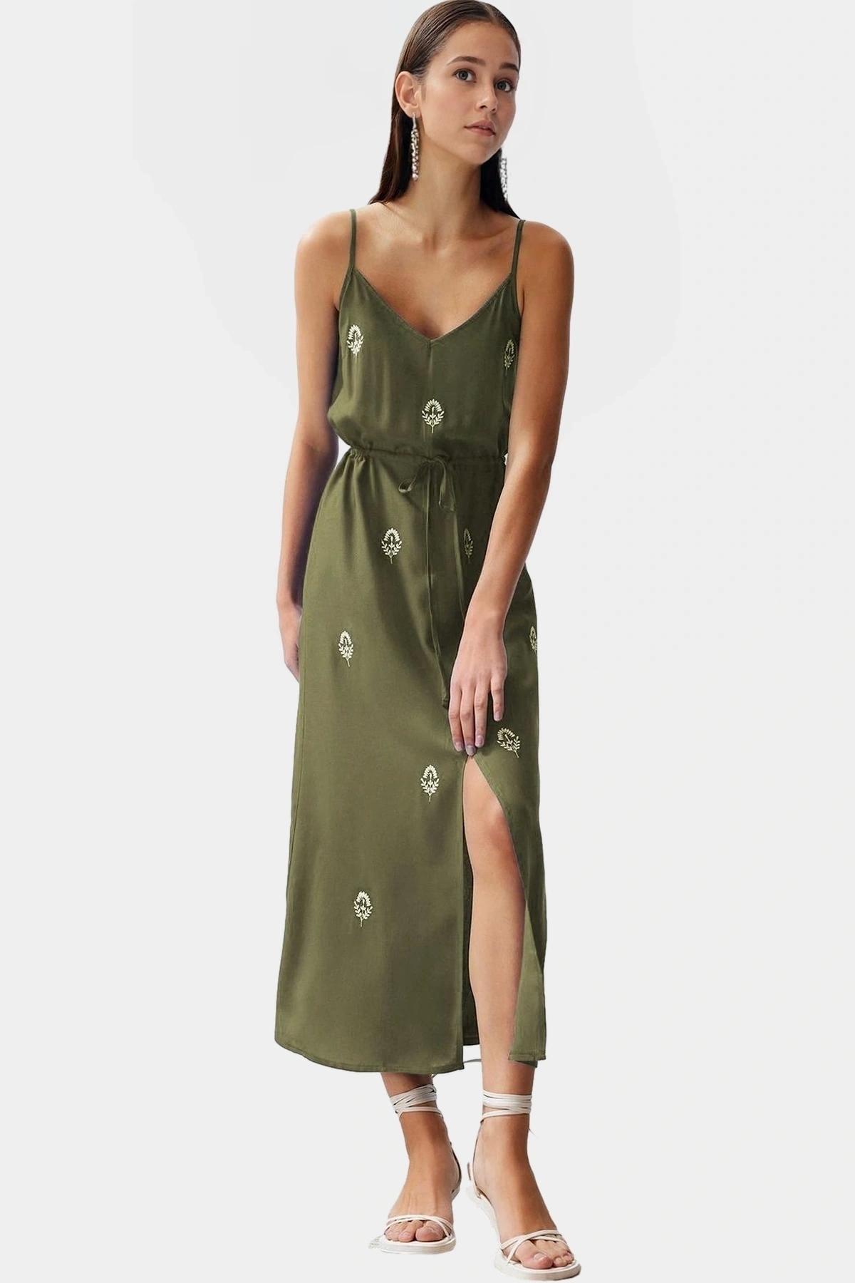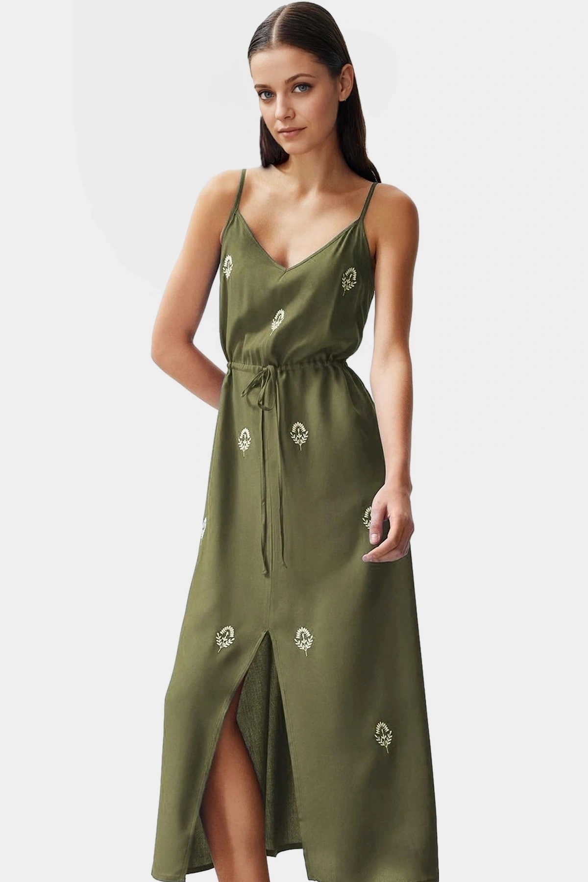 Yazlık Viskoz Dokuma Elbise Nakışlı Skater Maxi Boy Dayanıklı Malzeme Trend Tasarım