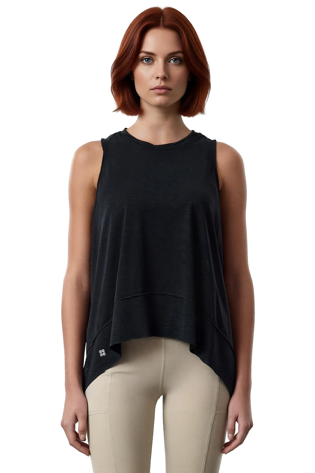Polyester ve elastan karışımı micro örme kumaşın yumuşak dokusu, teninizde ipeksi bir his bırakır. Nefes alan yapısı, spor yaparken veya aktif bir gün geçirdiğinizde vücudunuzun serin ve kuru kalmasına yardımcı olur. Kalın askılı tasarım, omuzlarınızda rahat bir his yaratırken, asimetrik kesim modern bir görünüm sağlar. Uzun boyu, vücudunuzu tam olarak örterek hem konfor hem de şıklık sunar. Düz siyah rengi, çeşitli spor kıyafetleri ve günlük kombinlerle kolayca uyum sağlar.