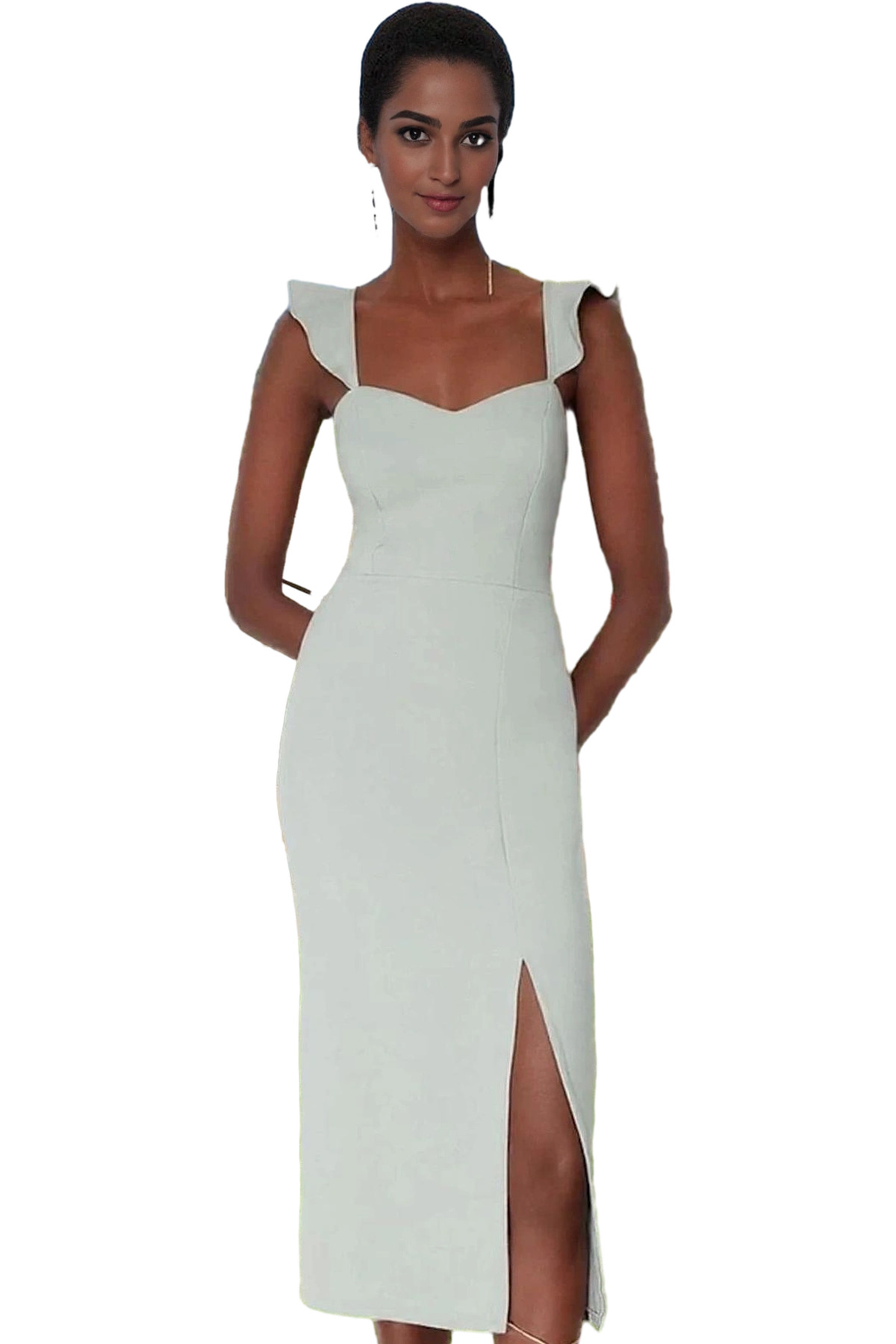 Zarif Kalp Yaka Midi Boy Bodycon Finike Dokuma Elbise Özenle Seçilmiş Özel Tasarım Kaliteli İşçilik - Görsel 4