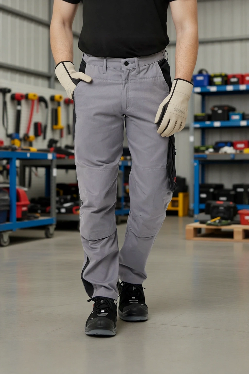 Konforlu ve dayanıklı yapısıyla öne çıkan Erkek Gri Siyah Gabardin İş Pantolonu, iş güvenliği ve outdoor aktiviteler için idealdir.