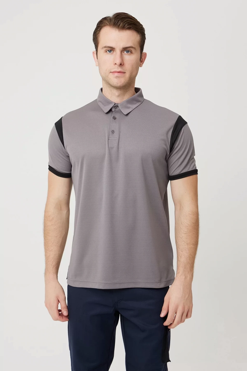 Omuz ve kol kısımlarındaki siyah detaylar, klasik polo yaka tasarımına sportif bir dokunuş katmaktadır. Düğmeli yakası profesyonel bir görünüm sunar. Esnek yapısı sayesinde hareket özgürlüğünüzü kısıtlamaz.