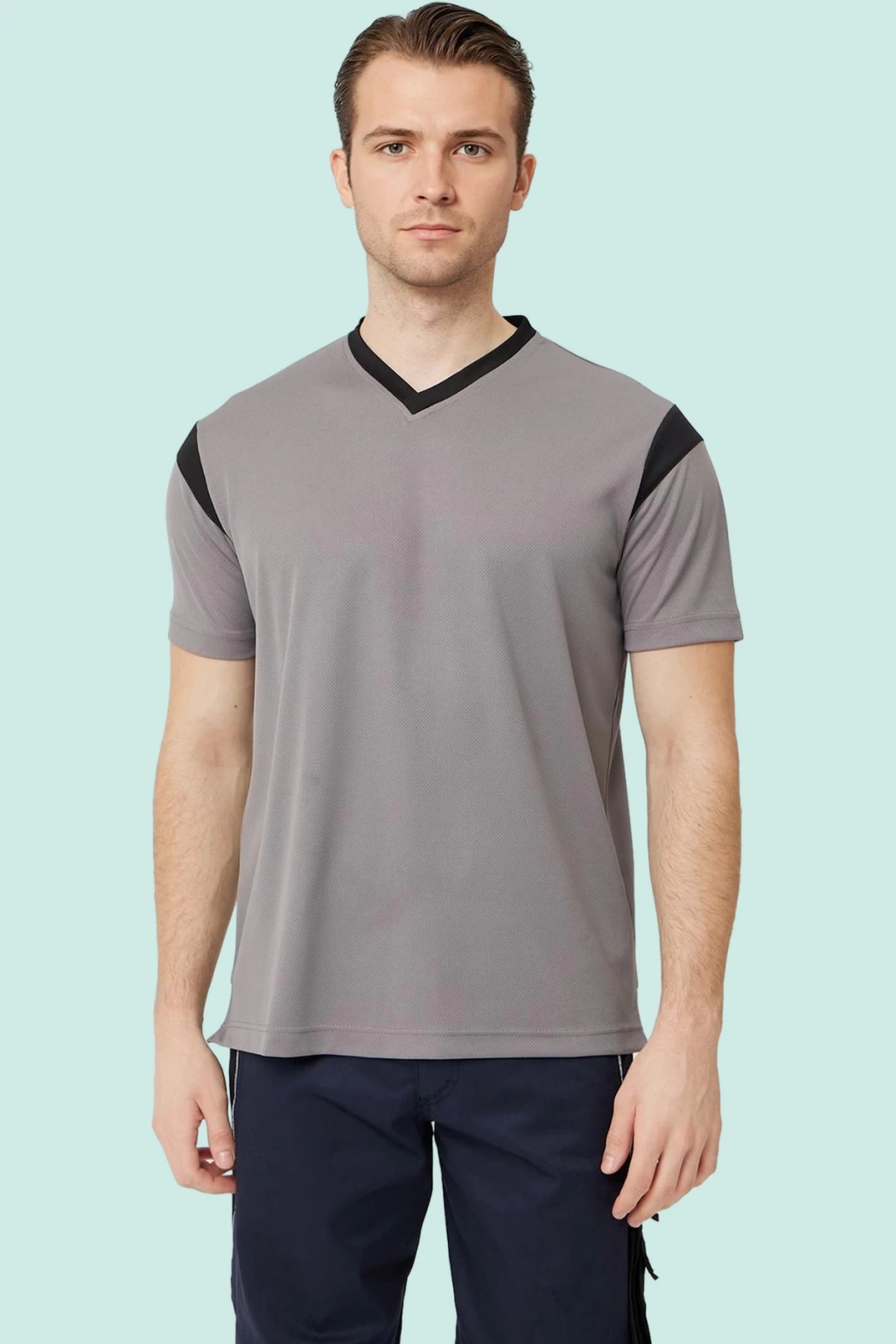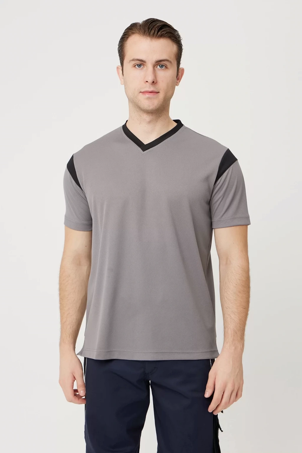 Armadillo markasının yeni nesil V yaka tişörtü ile tanışın! Gri ve siyah renk kombinasyonuyla şıklığı ve rahatlığı bir araya getiren bu tişört, iş ve günlük kullanım için idealdir.