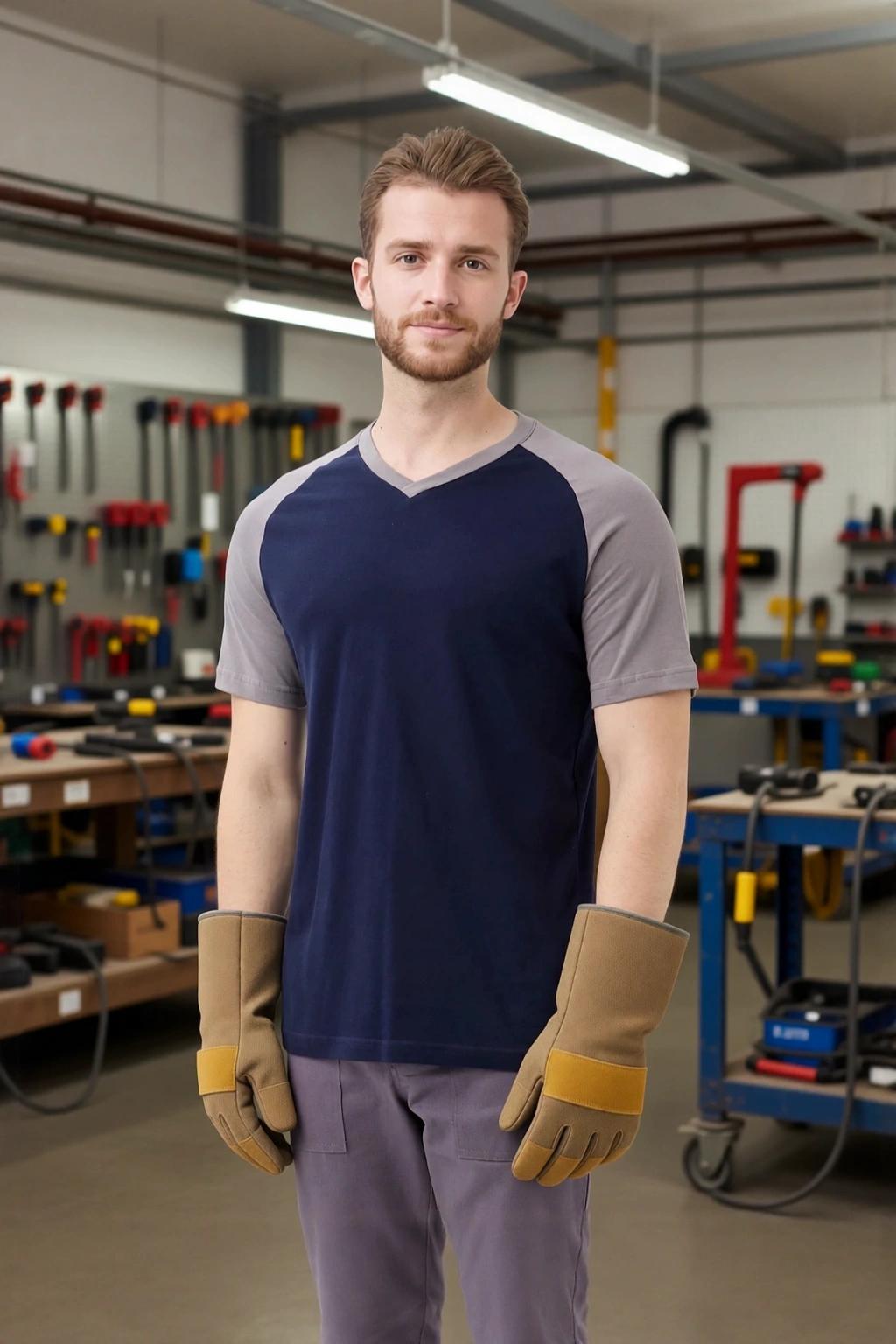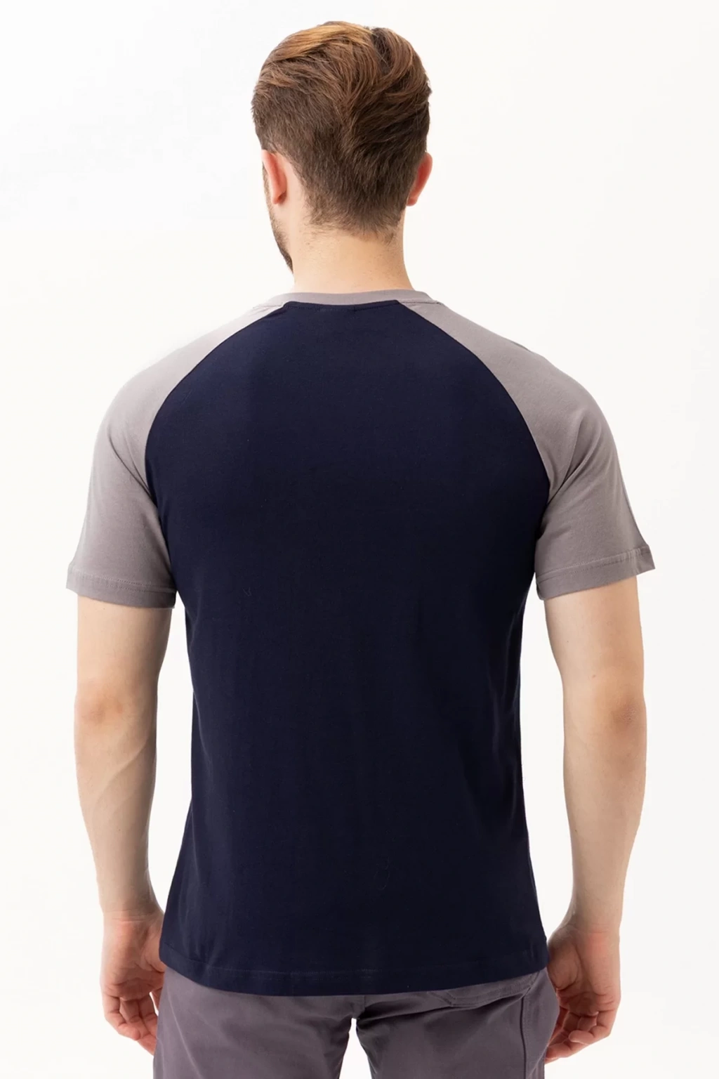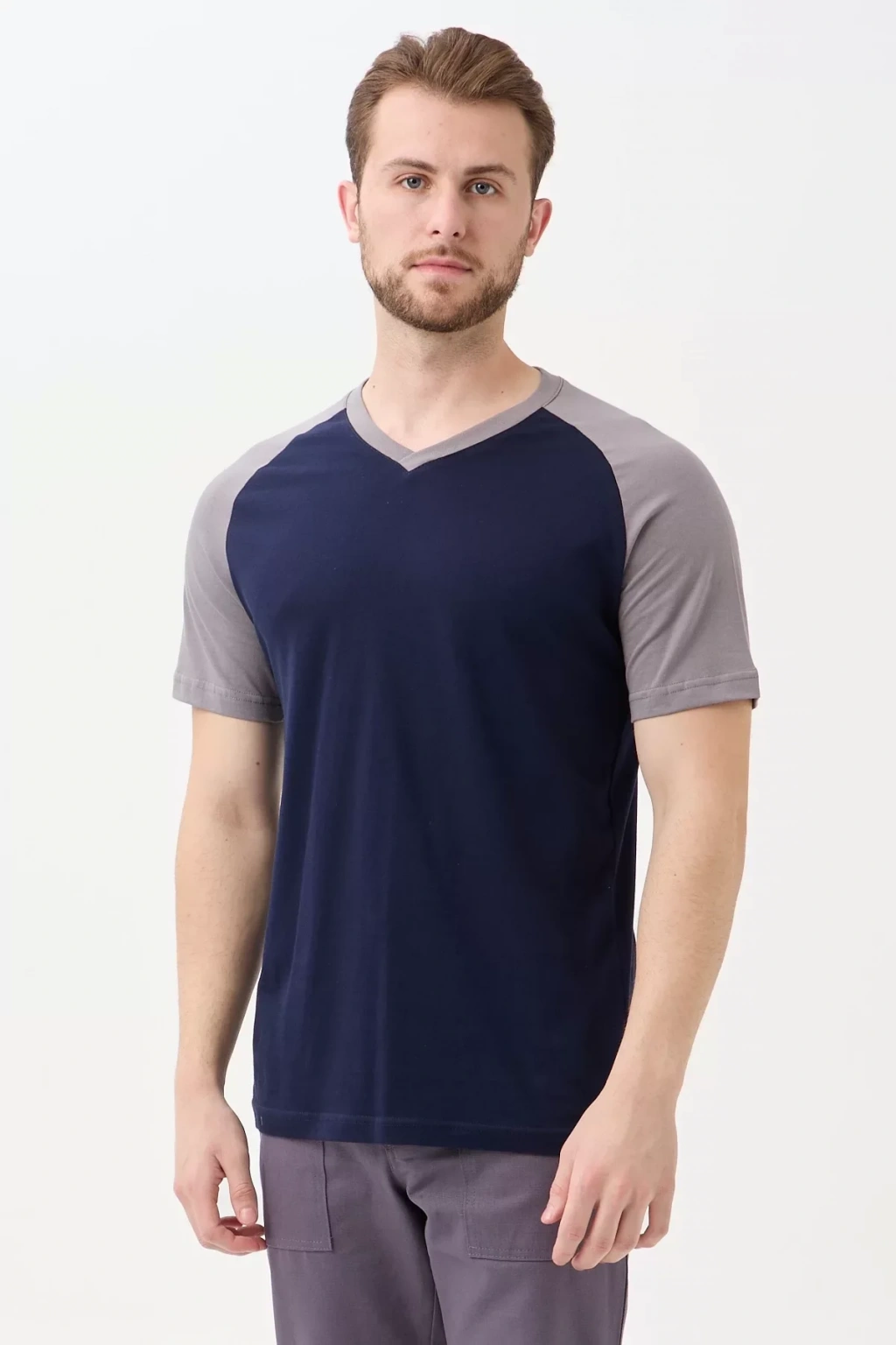 Gri ve lacivert renk kombinasyonu ile modern bir tarz sunan tişörtümüz, farklı pantolon ve alt giyim seçenekleriyle kombinlenebilir. Hem spor hem de casual bir görünüm yaratmak için idealdir. V yaka detayı, şık ve modern bir görünüm kazandırır.