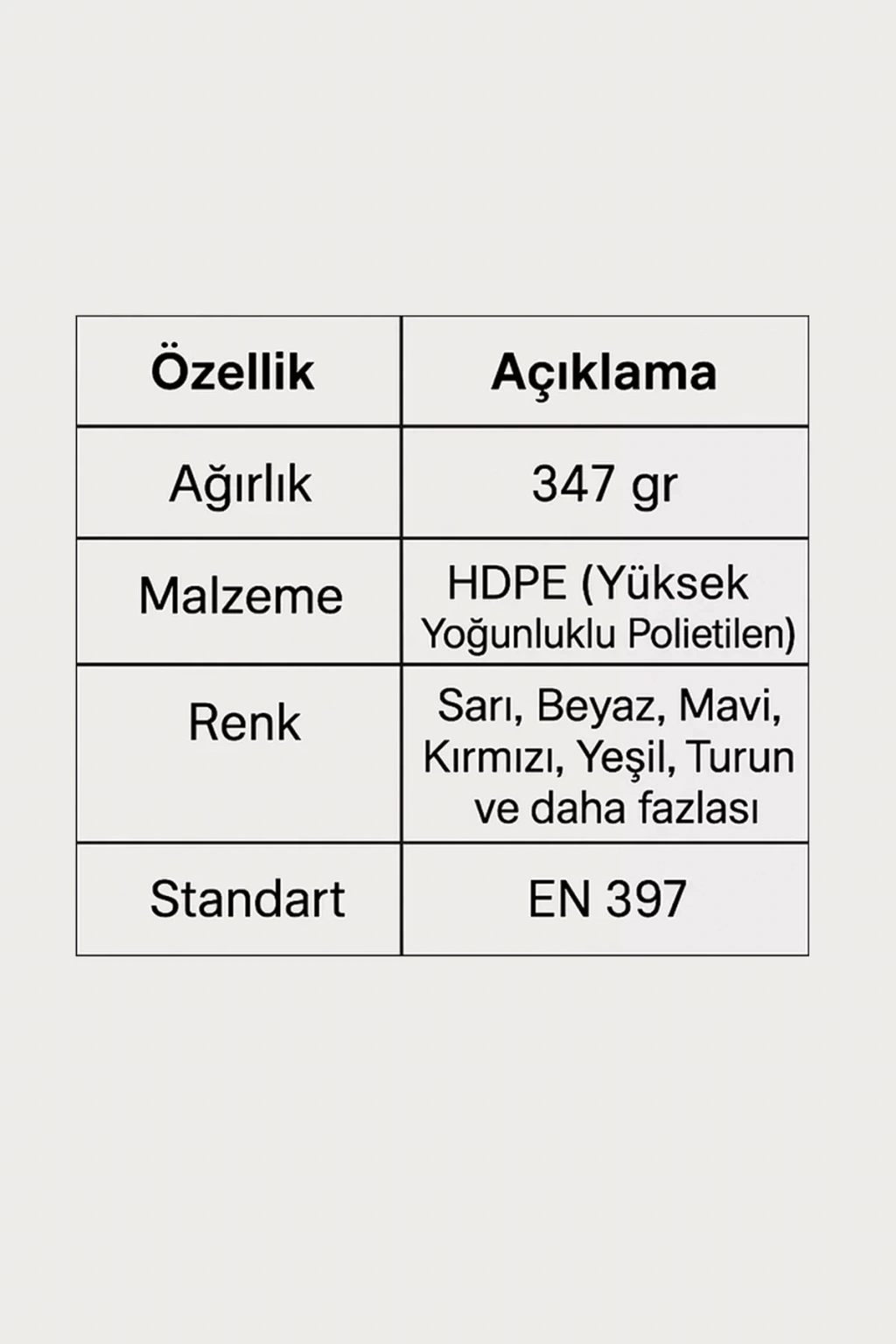 • Malzeme: Yüksek Dayanıklılıklı HDPE