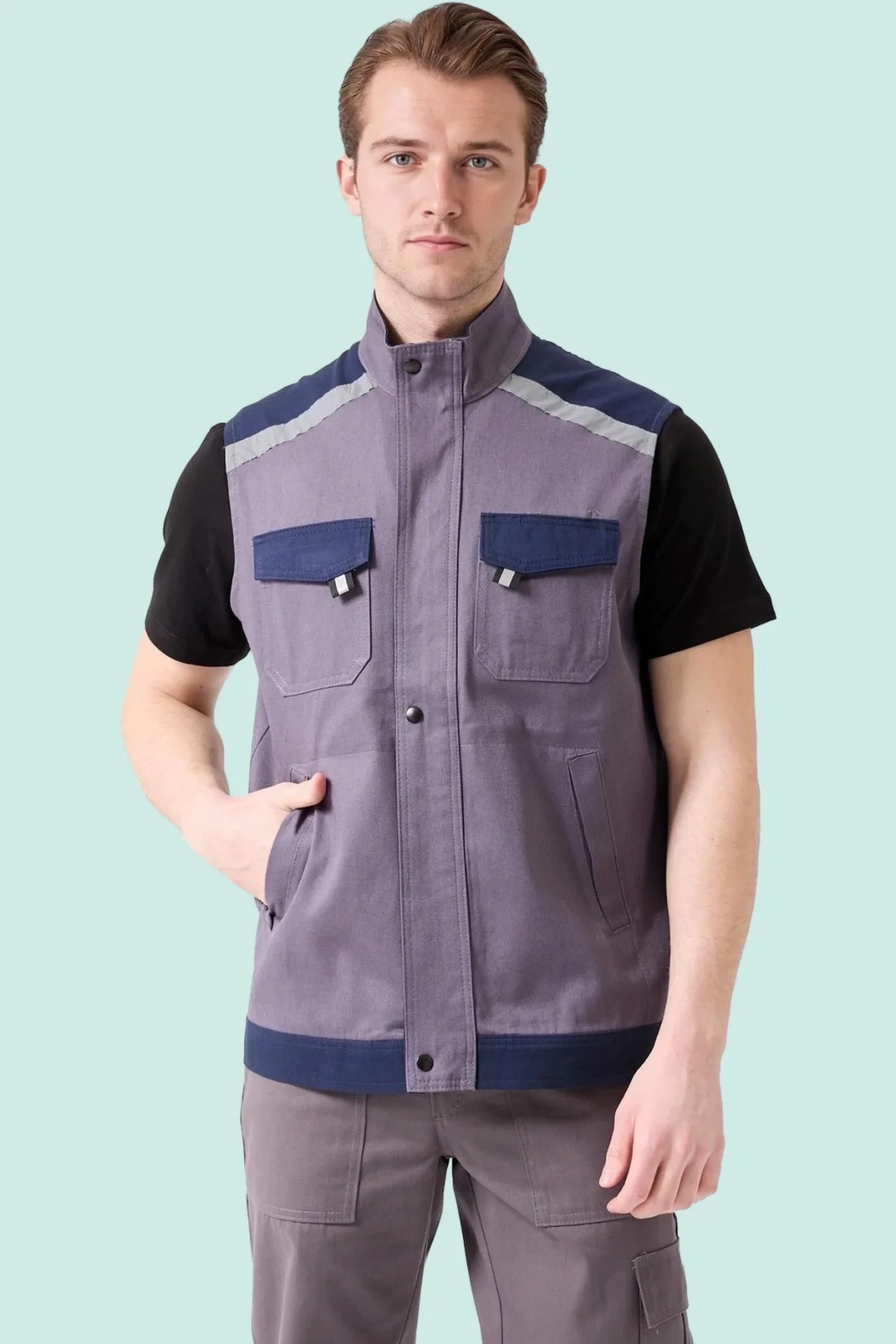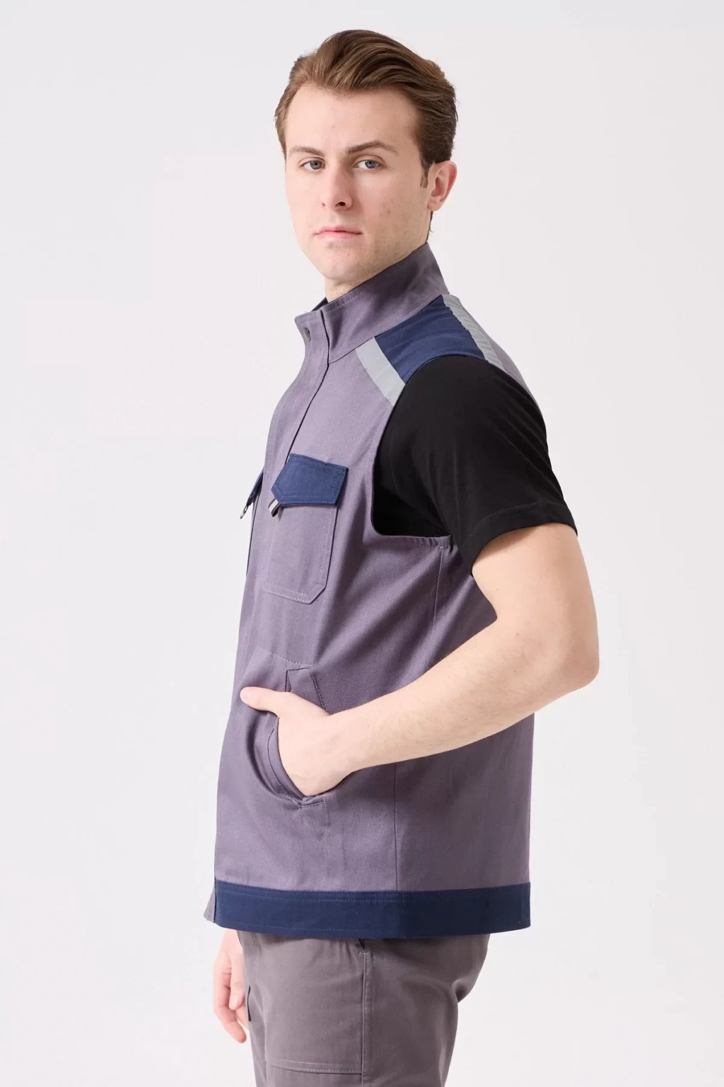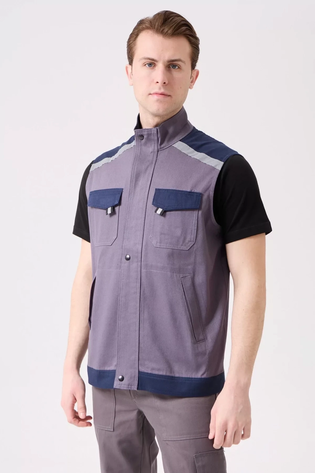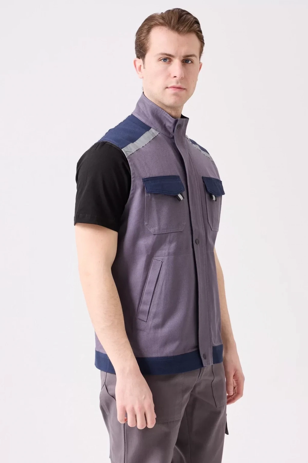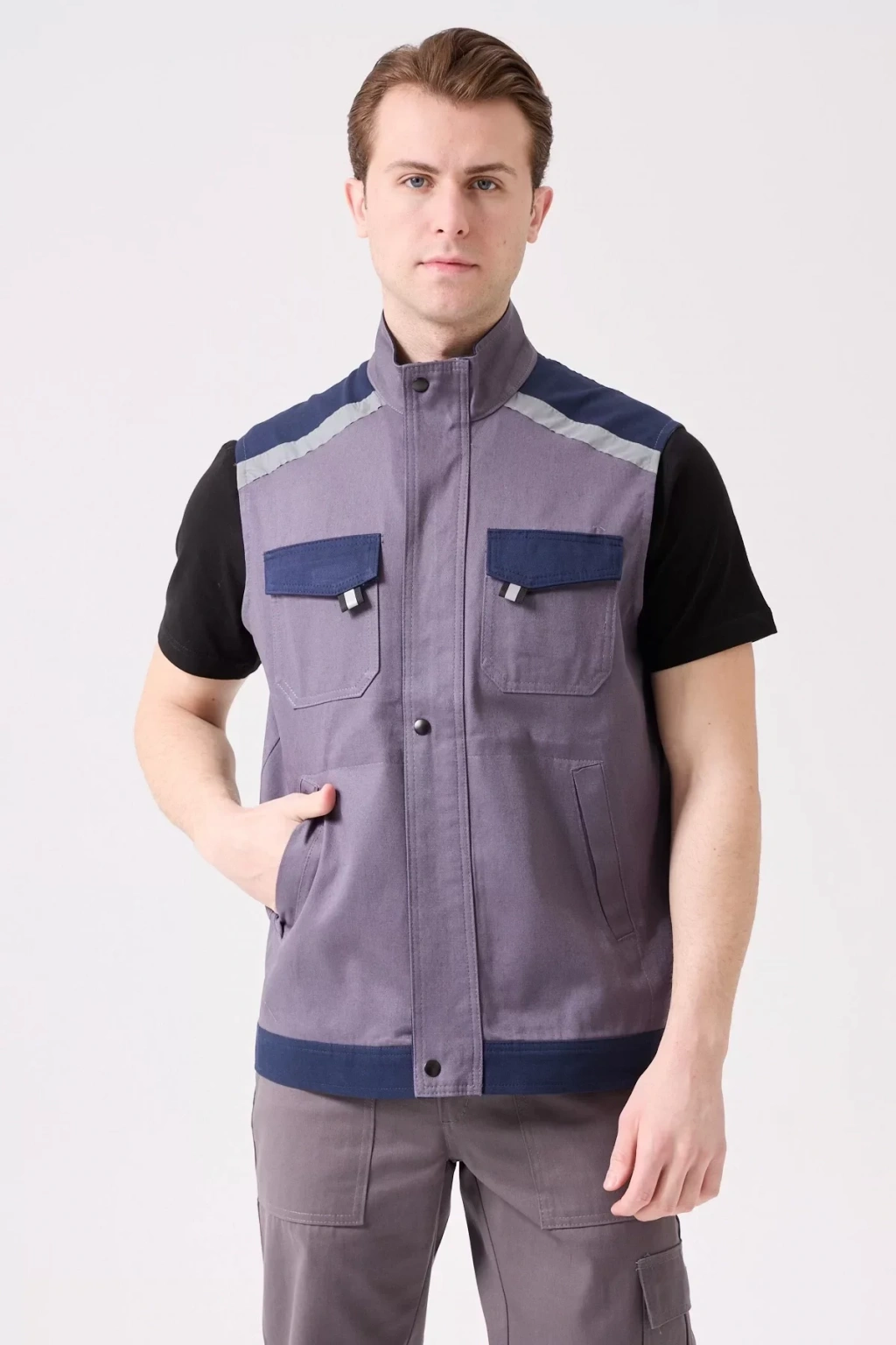 Yaz aylarında konforlu ve güvenli bir çalışma ortamı için tasarlanmış, gri ve lacivert renklerde çok cepli iş yeleği. Hafif gabardin kumaş yapısı ile nefes alabilir ve gün boyu rahatlık sunar.