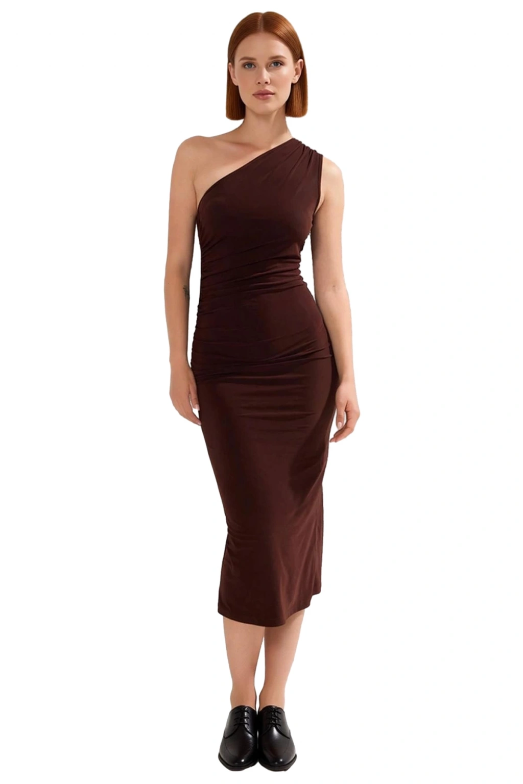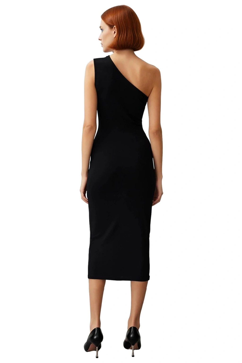 Bu göz alıcı kırmızı elbise, günlük yaşamınızda şık ve özgüvenli görünmenizi sağlayacak. Vücuda tam oturan bodycon tasarımıyla, feminen hatlarınızı mükemmel bir şekilde ortaya koyuyor. Kolsuz ve tek omuzlu kesimiyle modern ve trend bir tarz sunarken, rahat örme kumaşı gün boyu konforlu bir deneyim yaşatıyor. Herhangi bir özelliğe ihtiyaç duymadan, kendi başına mükemmel bir görünüm sunuyor.