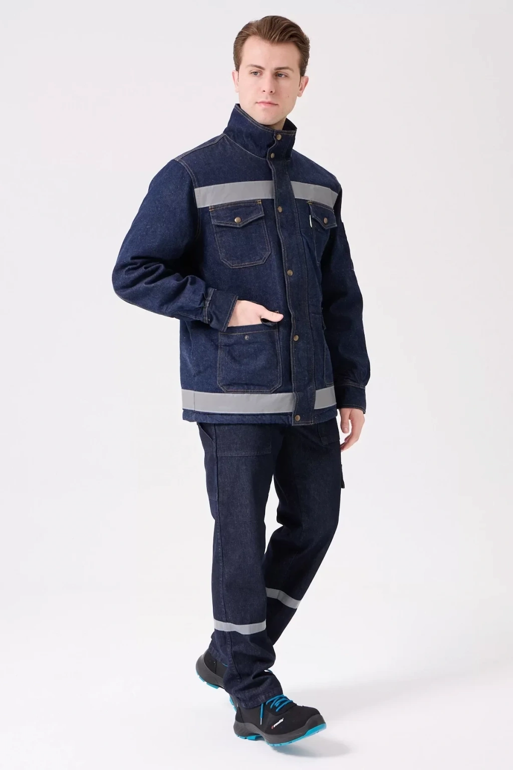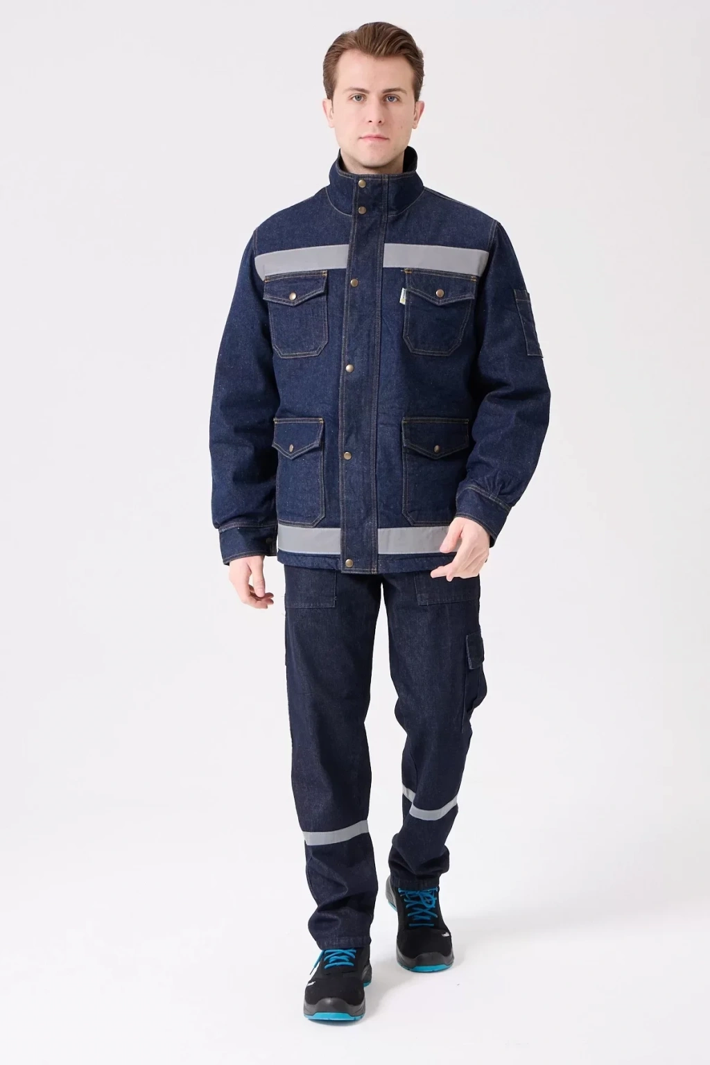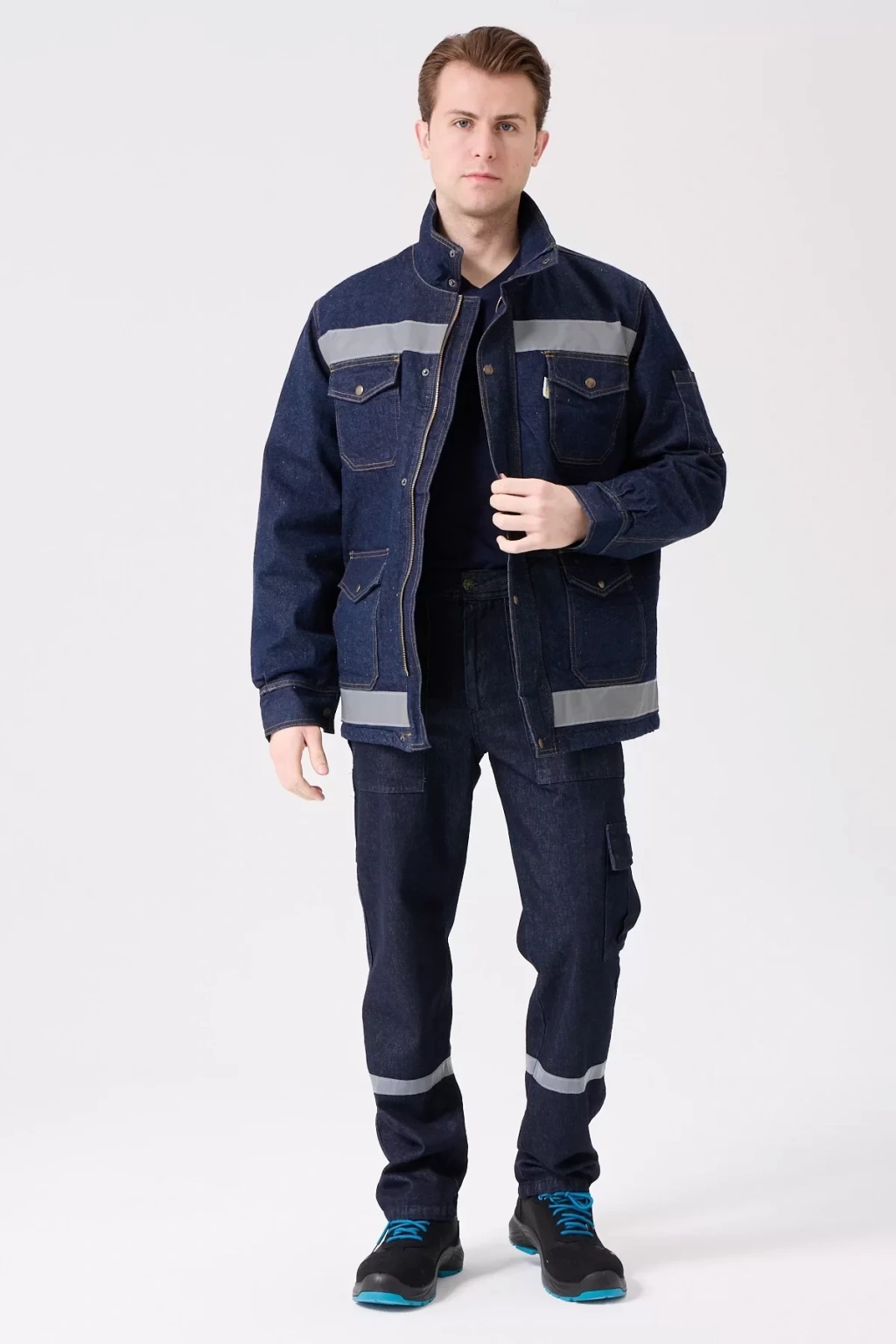 Zorlu kış koşullarında güvenli ve sıcak kalmanızı sağlayan, dayanıklı kot kumaştan üretilen iş güvenliği montu. Reflektör detaylarıyla düşük ışıkta görünürlüğünüzü artırır.