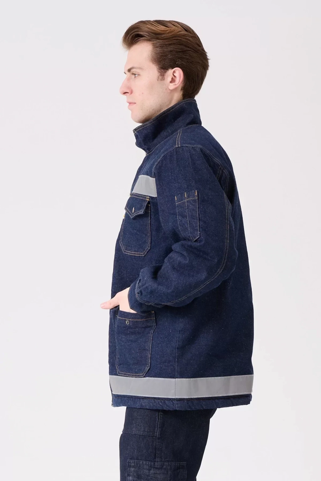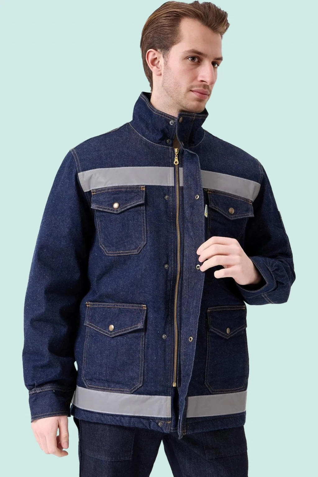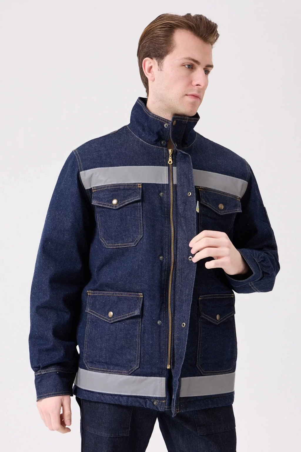 Zorlu kış koşullarında güvenli ve sıcak kalmanızı sağlayan, dayanıklı kot kumaştan üretilen iş güvenliği montu. Reflektör detaylarıyla düşük ışıkta görünürlüğünüzü artırır.