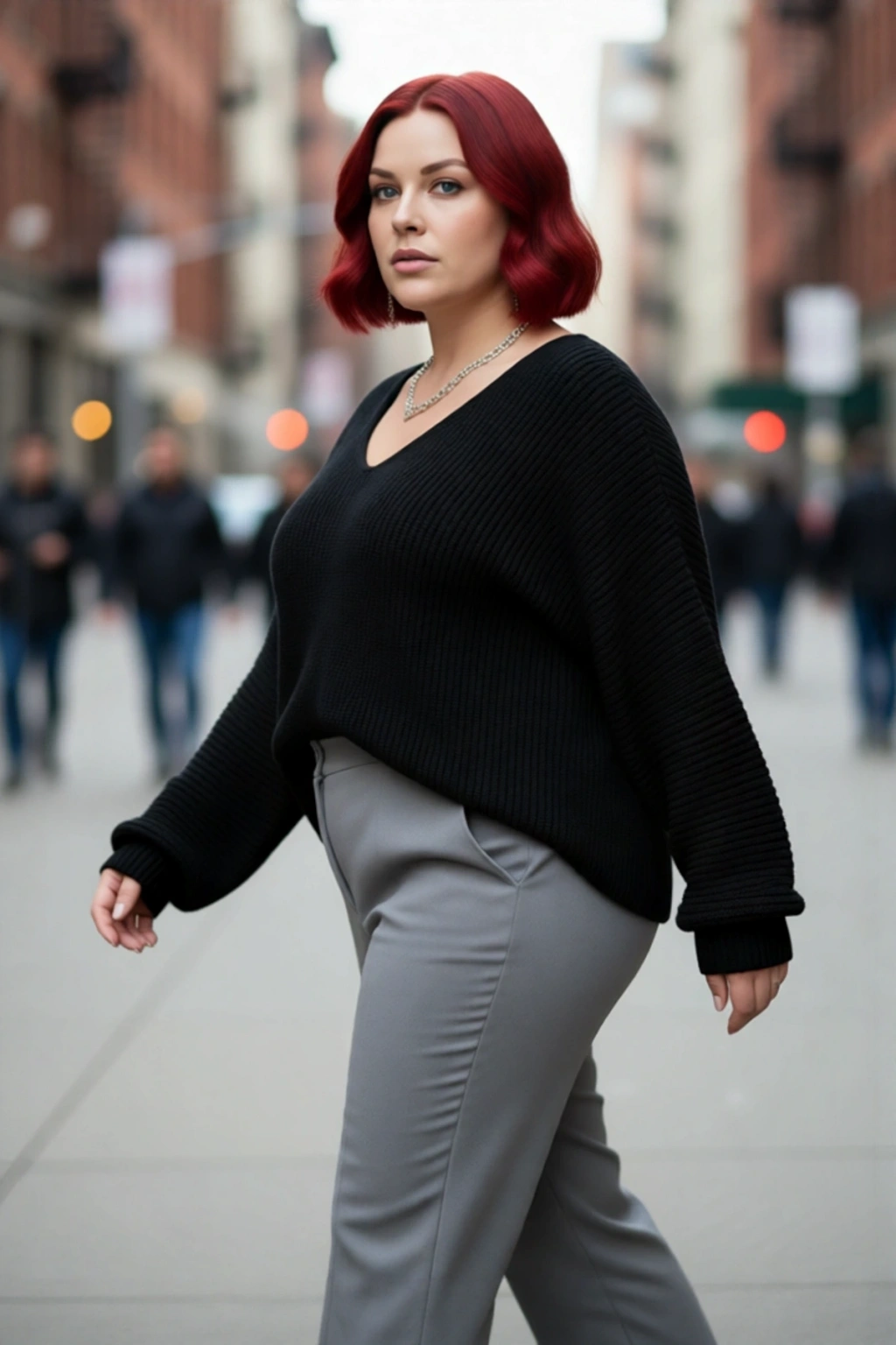 Büyük beden koleksiyonunun bir parçası olan bu kazak, her kadının kendine güvenli ve şık hissetmesi için tasarlandı. Kot pantolonlar, taytlar veya kumaş pantolonlarla kolayca kombinlenebilir. Günlük casual buluşmalardan ofis ortamına kadar birçok farklı alanda rahatlıkla tercih edilebilir. Kış ve sonbahar mevsimlerinin soğuk günlerinde hem tek başına hem de bir montun altına giyerek stilinizi tamamlayabilirsiniz.