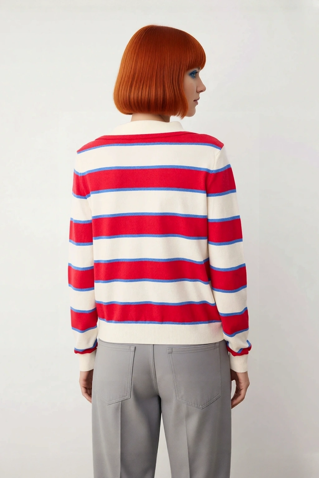 Bu şık ve konforlu kadın triko kazak, casual/günlük giyim tarzınızın anahtar parçası olacak. Regular boyu sayesinde jean pantolonlardan kumaş pantolonlara kadar pek çok alt giyim ürünüyle mükemmel uyum sağlar. Ekru, kırmızı ve mavi renklerin dinamik uyumuyla oluşan çizgili deseni, enerjik ve stil sahibi bir görünüm yaratır. Sonbahar, kış ve ilkbahar aylarında rahatlıkla tercih edebileceğiniz bu kazak, hem günlük aktivitelerinizde hem de arkadaş buluşmalarında şıklığınızı tamamlar. Materyalindeki viskoz, polyester ve poliamid karışımı, ürünün esnek, dayanıklı ve uzun ömürlü olmasını sağlar.