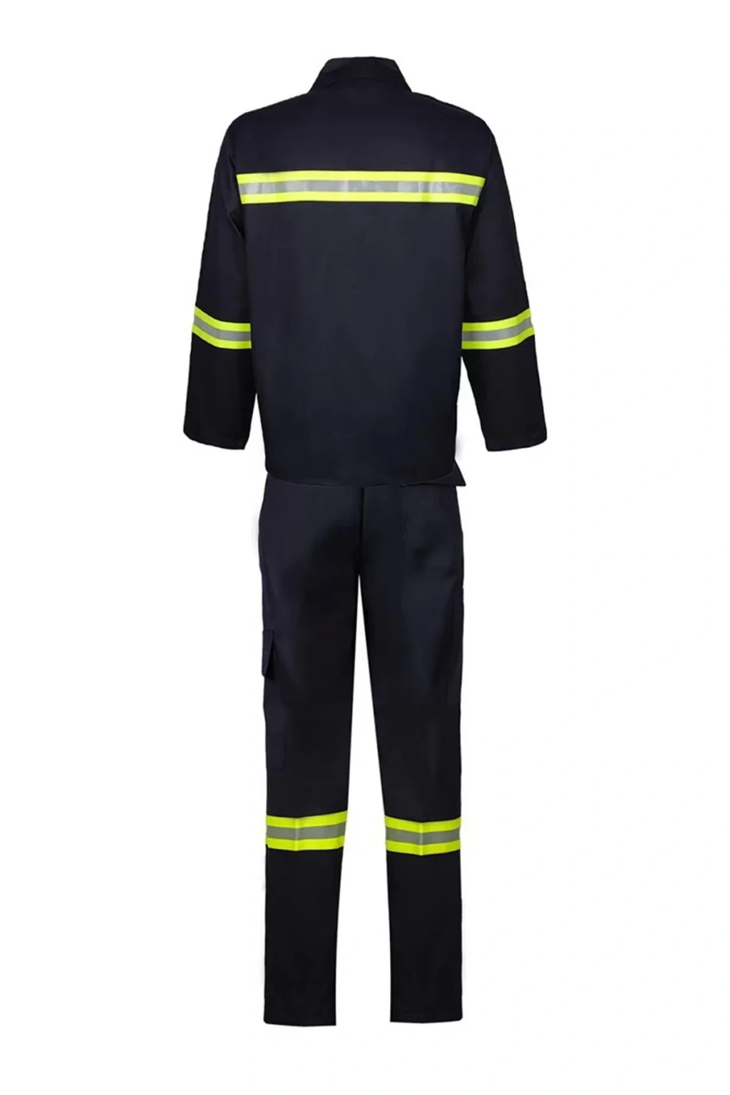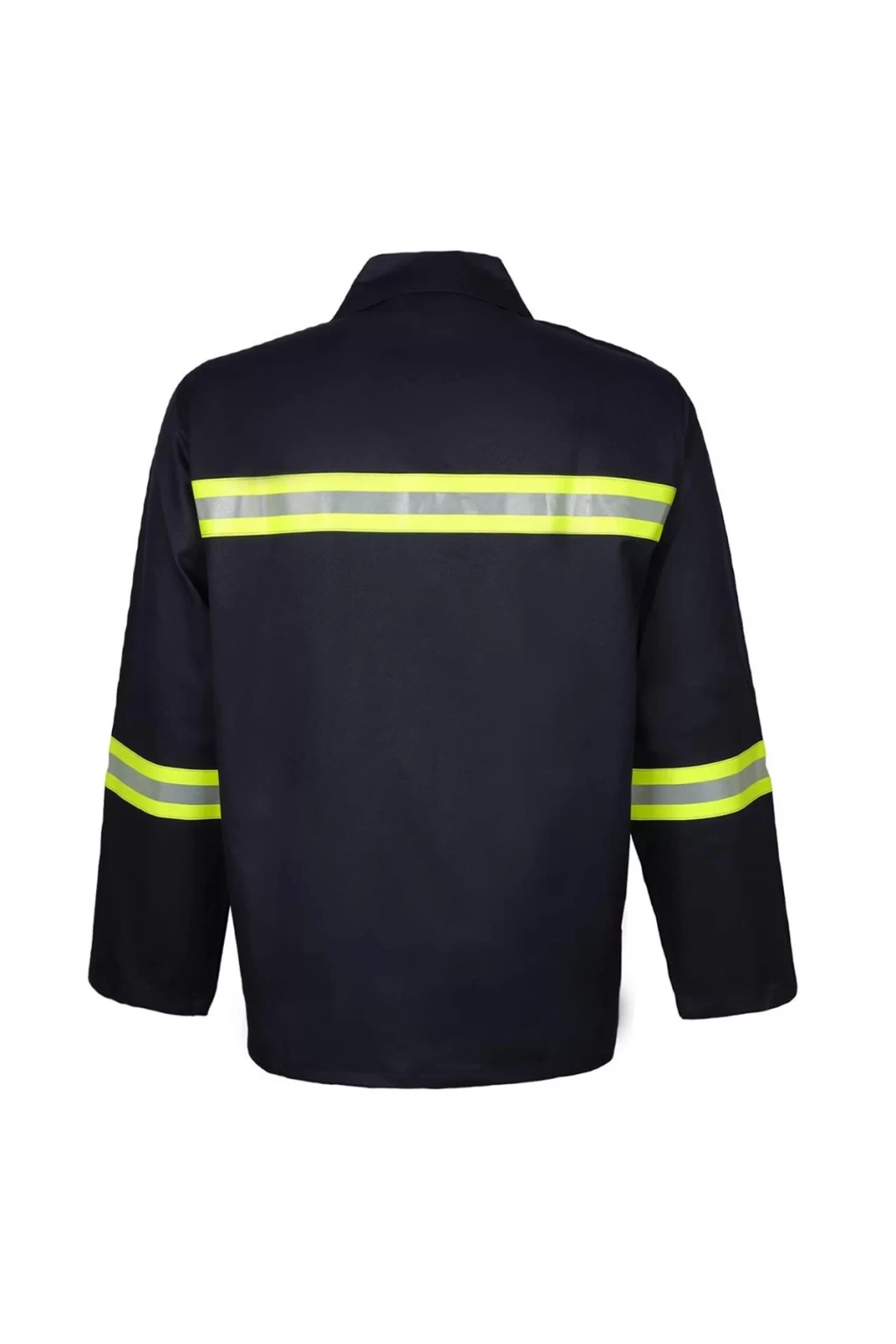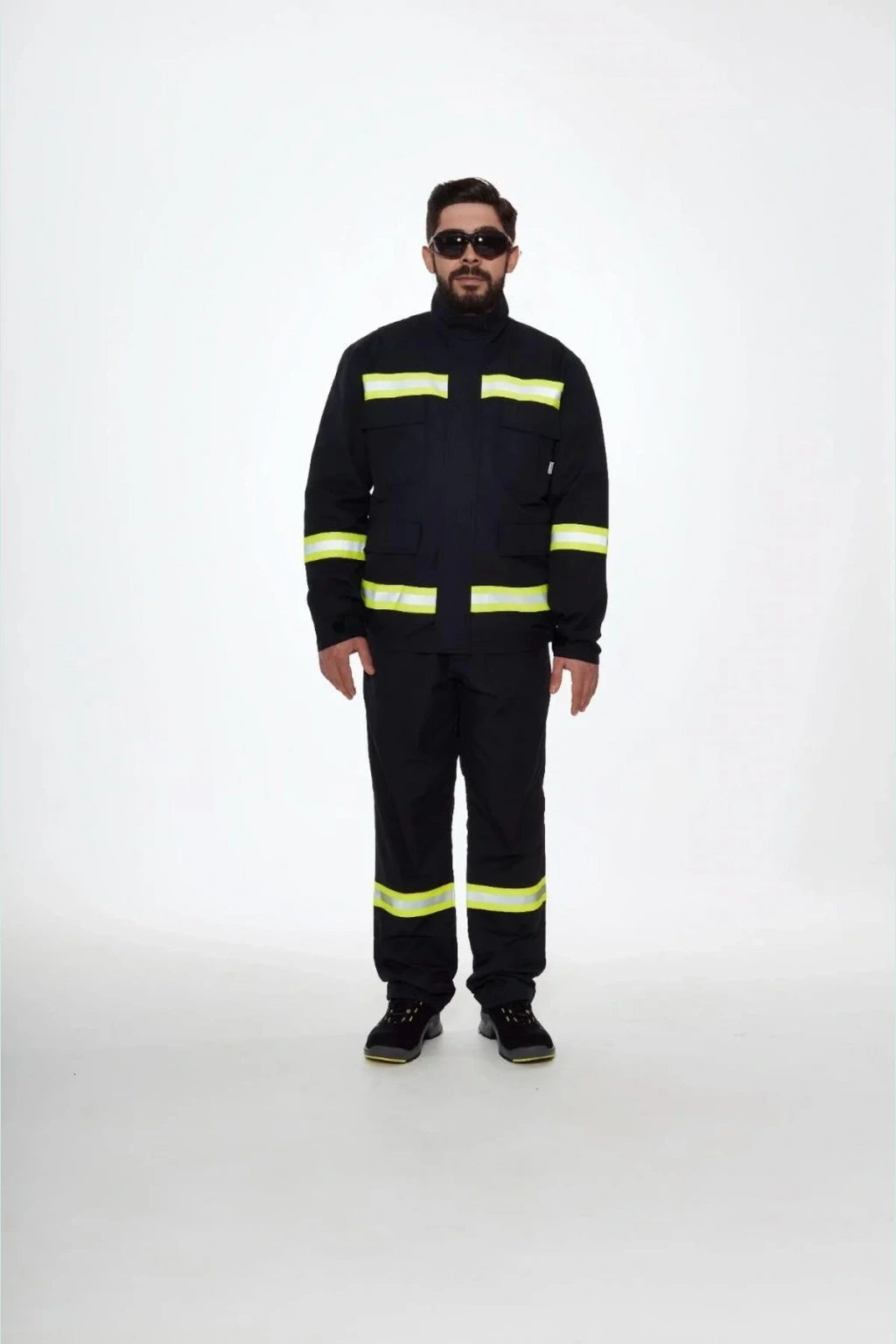 Endüstriyel iş güvenliği için tasarlanmış, alev almaz kumaştan üretilen siyah renkli yangın koruma giysisi. Hem dayanıklı hem de konforlu yapısıyla uzun saatler boyunca güvenli ve rahat bir çalışma ortamı sunar.