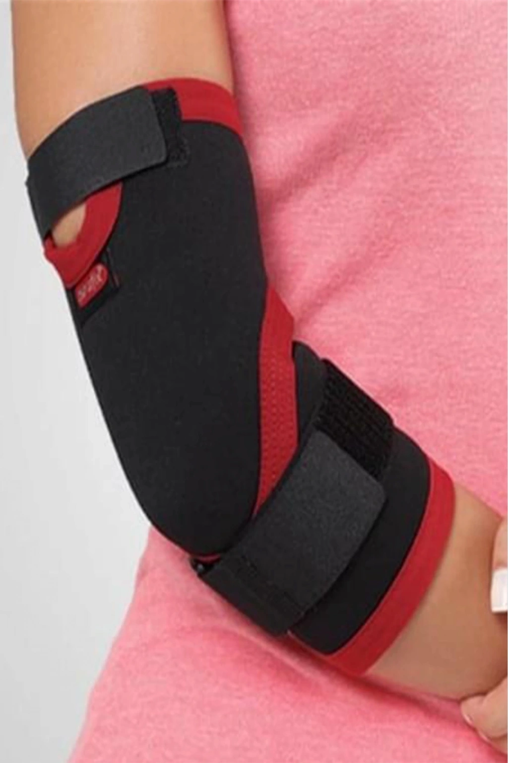 Spor ve iş güvenliği için idealdir. Dirsek desteği koruyucu, yüksek kaliteli neoprenden üretilmiştir ve kırmızı-siyah renk kombinasyonuyla şık bir görünüme sahiptir.