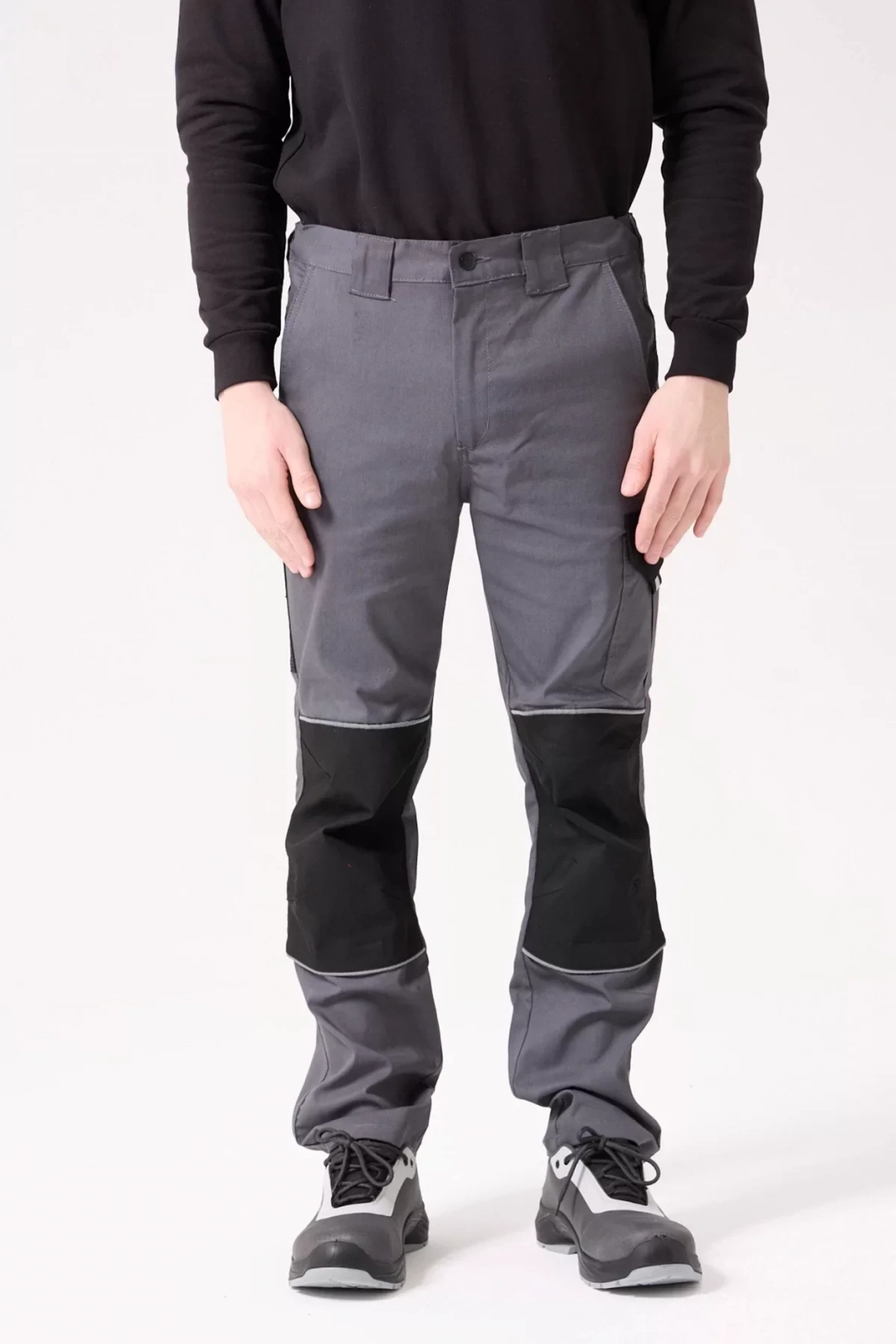 Nefes alabilen %65 polyester ve %35 pamuk karışımı gabardin kumaştan üretilen pantolon, tüm gün süren kullanımlarda bile konfor sunar. Gri ve siyah renk kombinasyonu ile şık ve modern bir görünüm kazandırırken, işlevsel detaylarıyla da dikkat çeker.