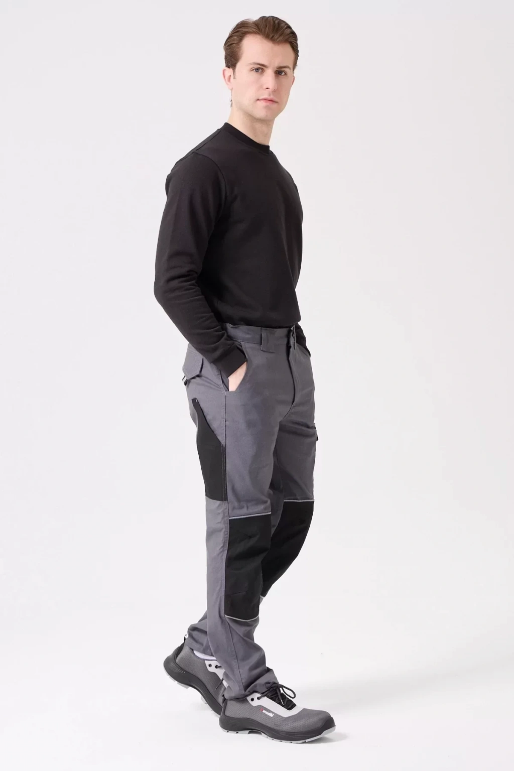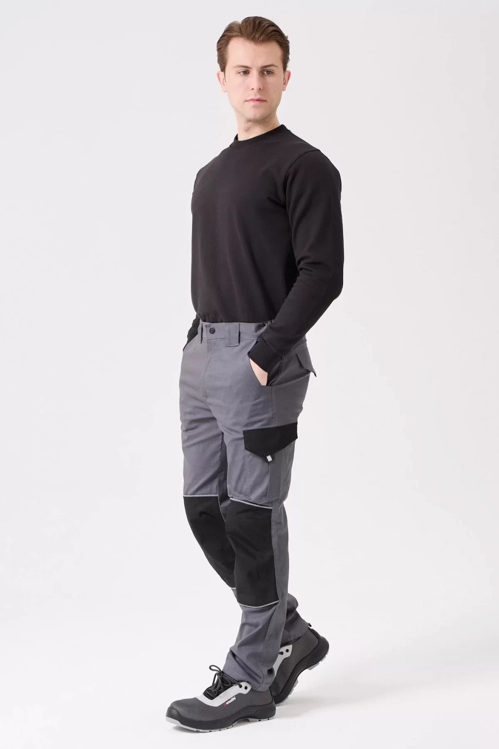 Ergonomik tasarımı ve dayanıklı yapısıyla öne çıkan erkek gri gabardin iş pantolonu, zorlu çalışma koşullarına karşı üstün koruma sağlar.