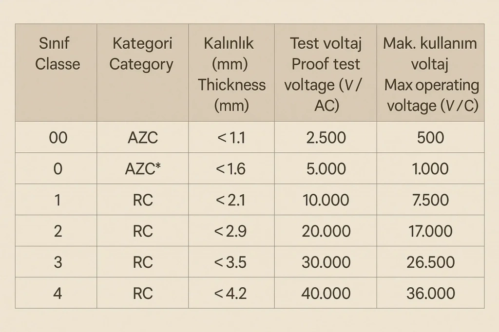 Bu eldivenler, EN 60903:2003 ve IEC 60903:2014 standartlarına uygun olarak üretilmiştir ve 5000 volta kadar elektriksel izolasyon sağlar. Bej renkli, dayanıklı ve esnek bir malzemeden üretilmiştir. Kullanımı kolay ve konforludur.