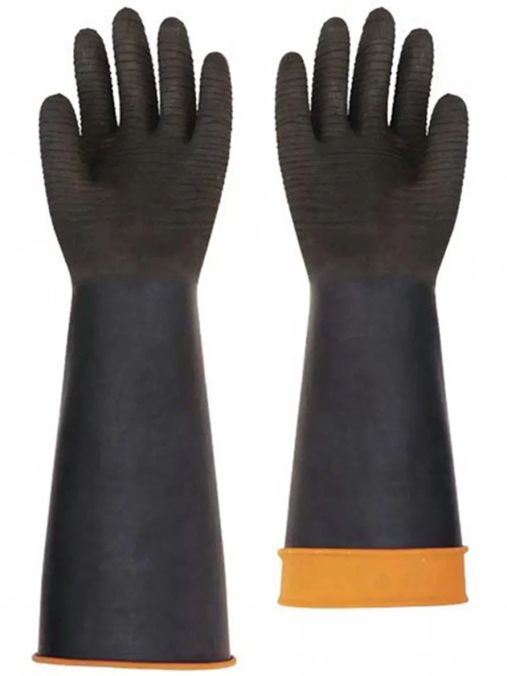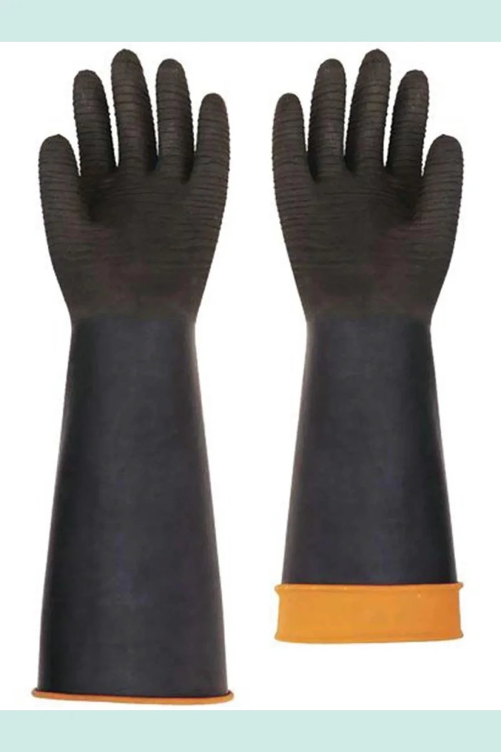 Endüstriyel işlerde maksimum koruma sağlayan, siyah kauçuktan üretilen uzun tırtıklı eldivenler. Dayanıklı ve kaymaz yapısıyla güvenli bir kullanım sunar.