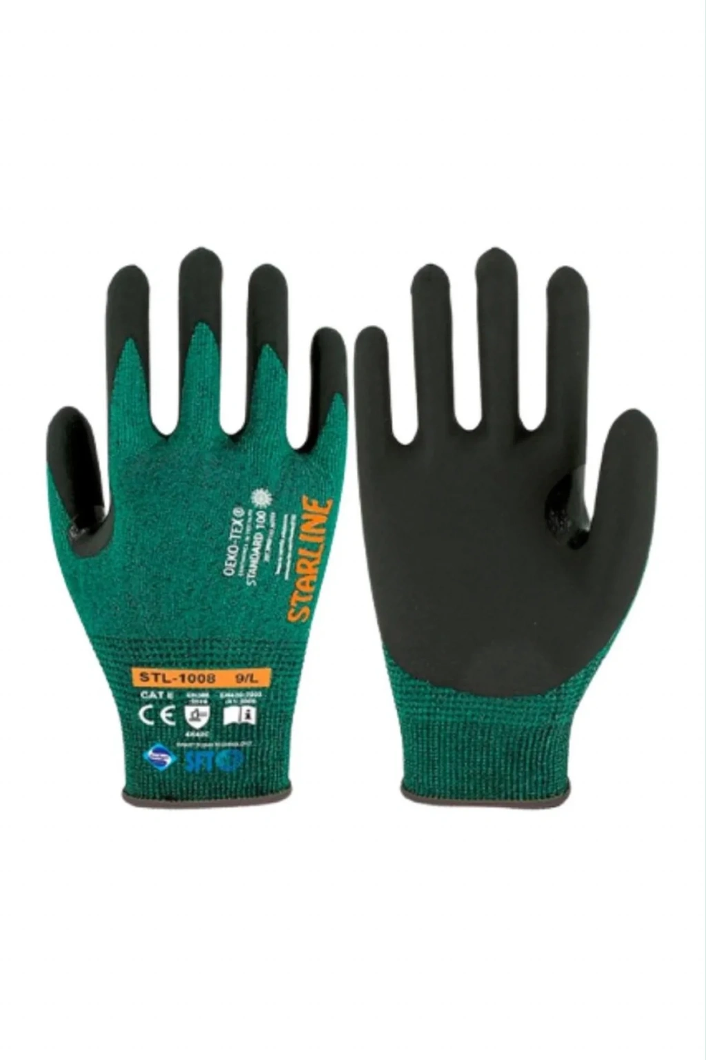 Starline Yeşil Nitril Kaplamalı Kesilmeye Dirençli İş Eldiveni, üstün koruma ve konfor arayan profesyoneller için ideal bir iş güvenliği eldivenidir.