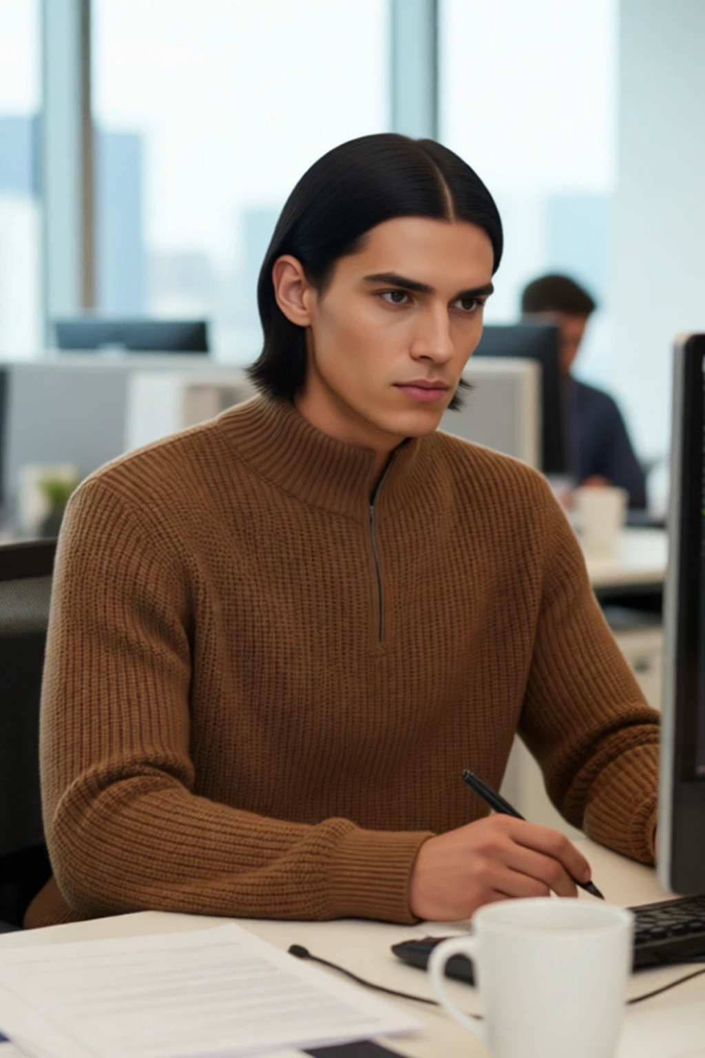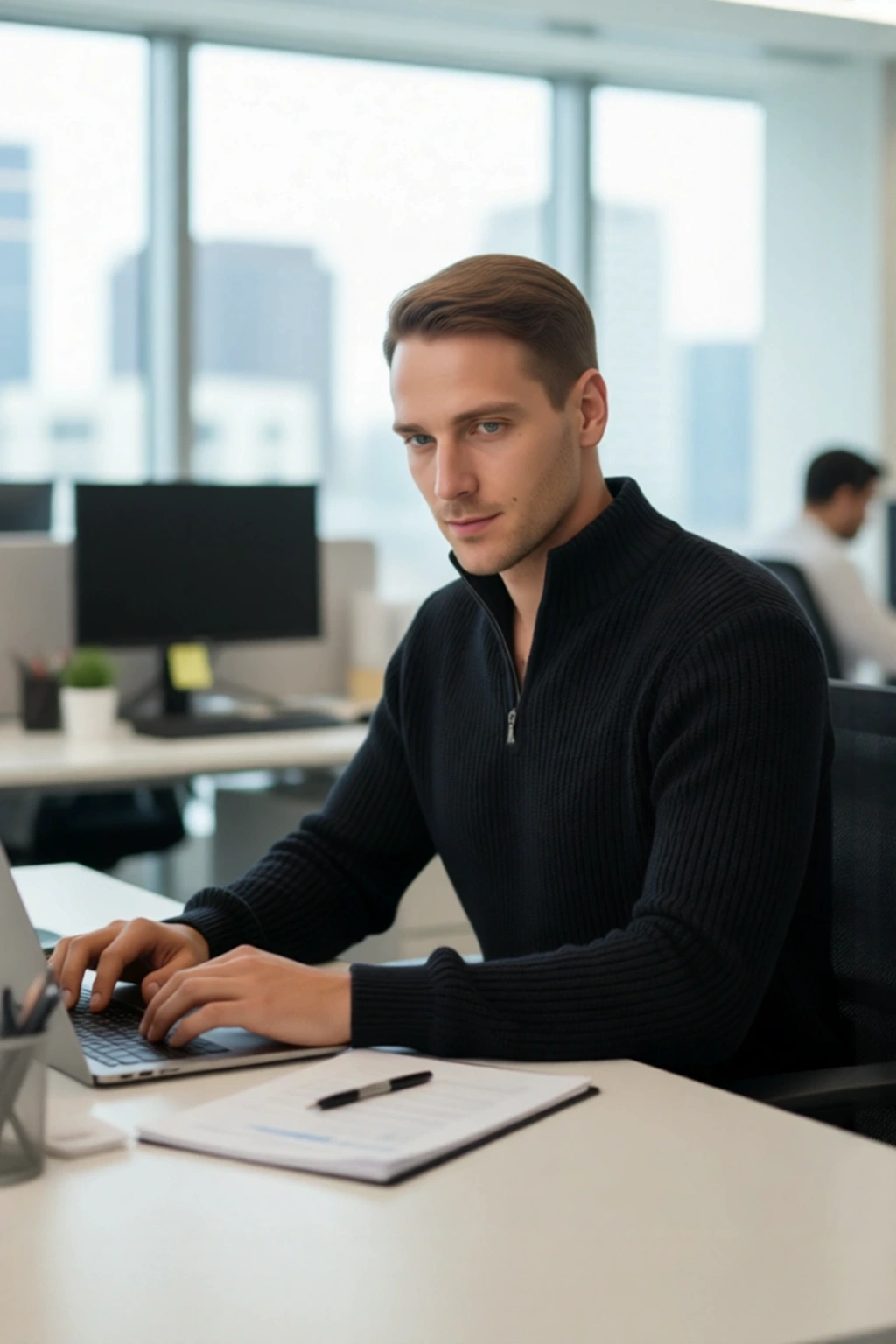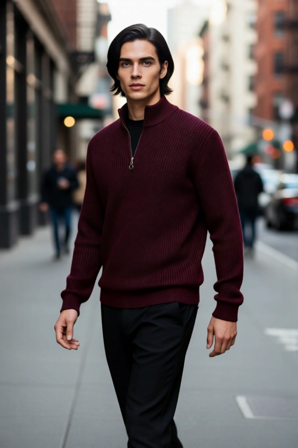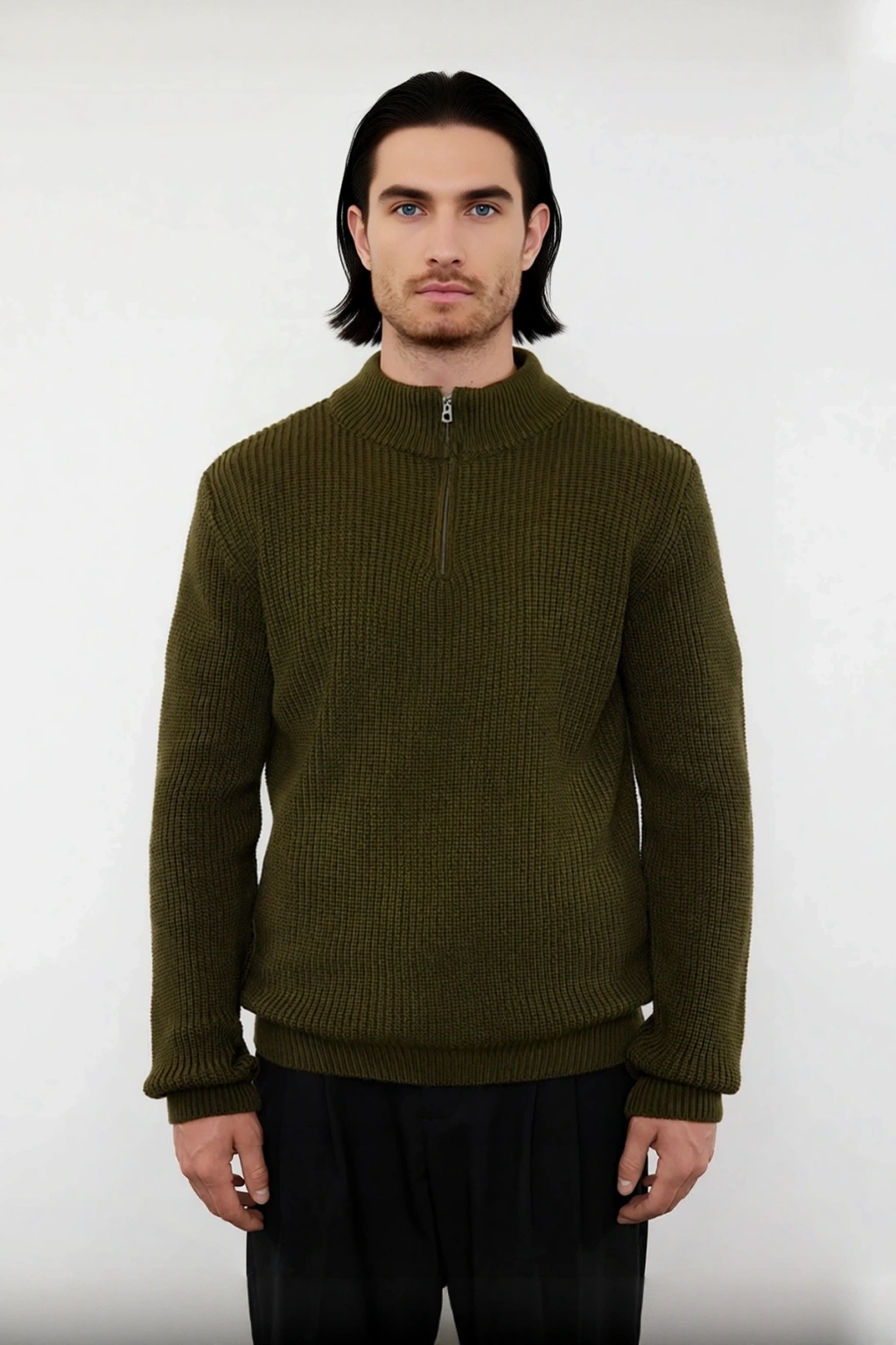 Yarım fermuarlı dik yaka tasarımı, hem modern bir detay sunar hem de kullanıcısına farklı giyim seçenekleri sunar; hava durumuna göre fermuarı açıp kapatarak stilinizi ayarlayabilirsiniz. Standart uzun kol tipi, gün içinde özgürce hareket etmenizi sağlarken, dayanıklı triko kumaşı sayesinde uzun süreli kullanımlarda bile formunu korur. Cepsiz ve kemersiz sade yapısı, kazağın fonksiyonelliğini artırırken, Type 0 yıkama talimatı ile makinede kolayca temizlenebilir, bu da pratik bir kullanım deneyimi sunar.