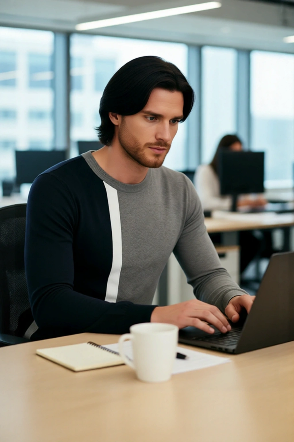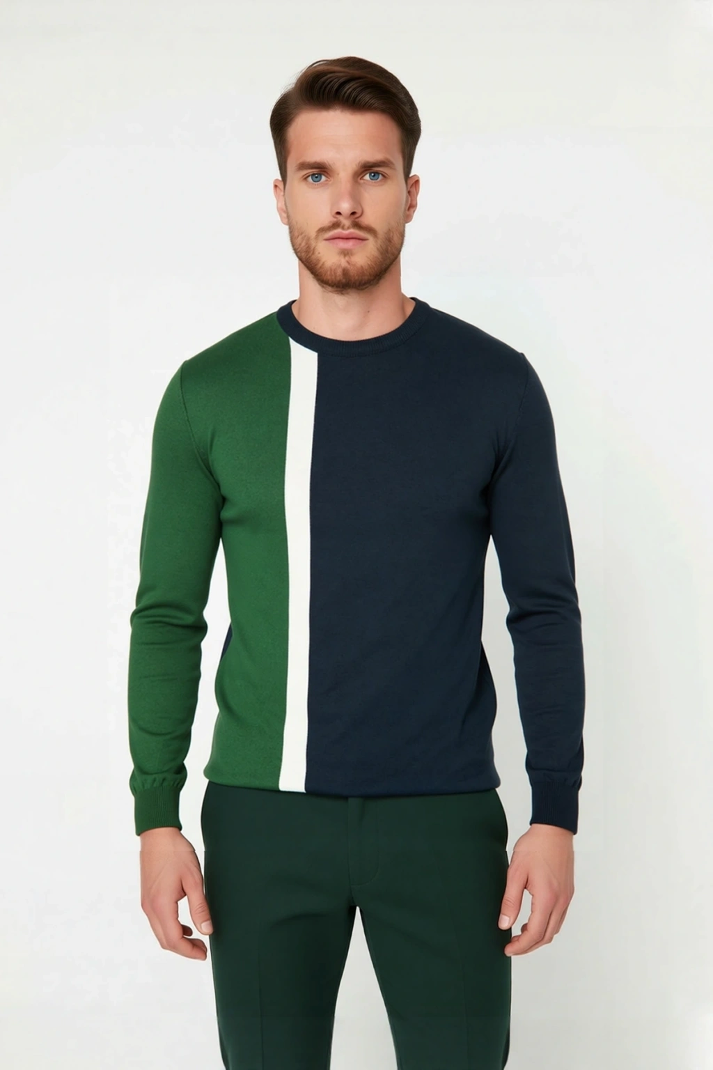 Erkekler için tasarlanan bu şık triko kazak, fitted kalıbıyla vücuda tam oturarak modern ve zarif bir görünüm sunar. Yüzde 50 Akrilik ve yüzde 50 Pamuktan oluşan özel materyal bileşimi, kazagın yumuşak dokusunu ve nefes alabilen yapısını garanti ederken, aynı zamanda ideal bir sıcaklık dengesi sağlar. Gri ana rengin beyaz, bej ve koyu gri tonlarıyla harmanlandığı renk bloklu deseni, kazaga dinamik ve çağdaş bir hava katıyor. Baskısız yüzeyi sayesinde her türlü kombinle uyum sağlayarak, günlük stilinize sofistike bir dokunuş ekler.