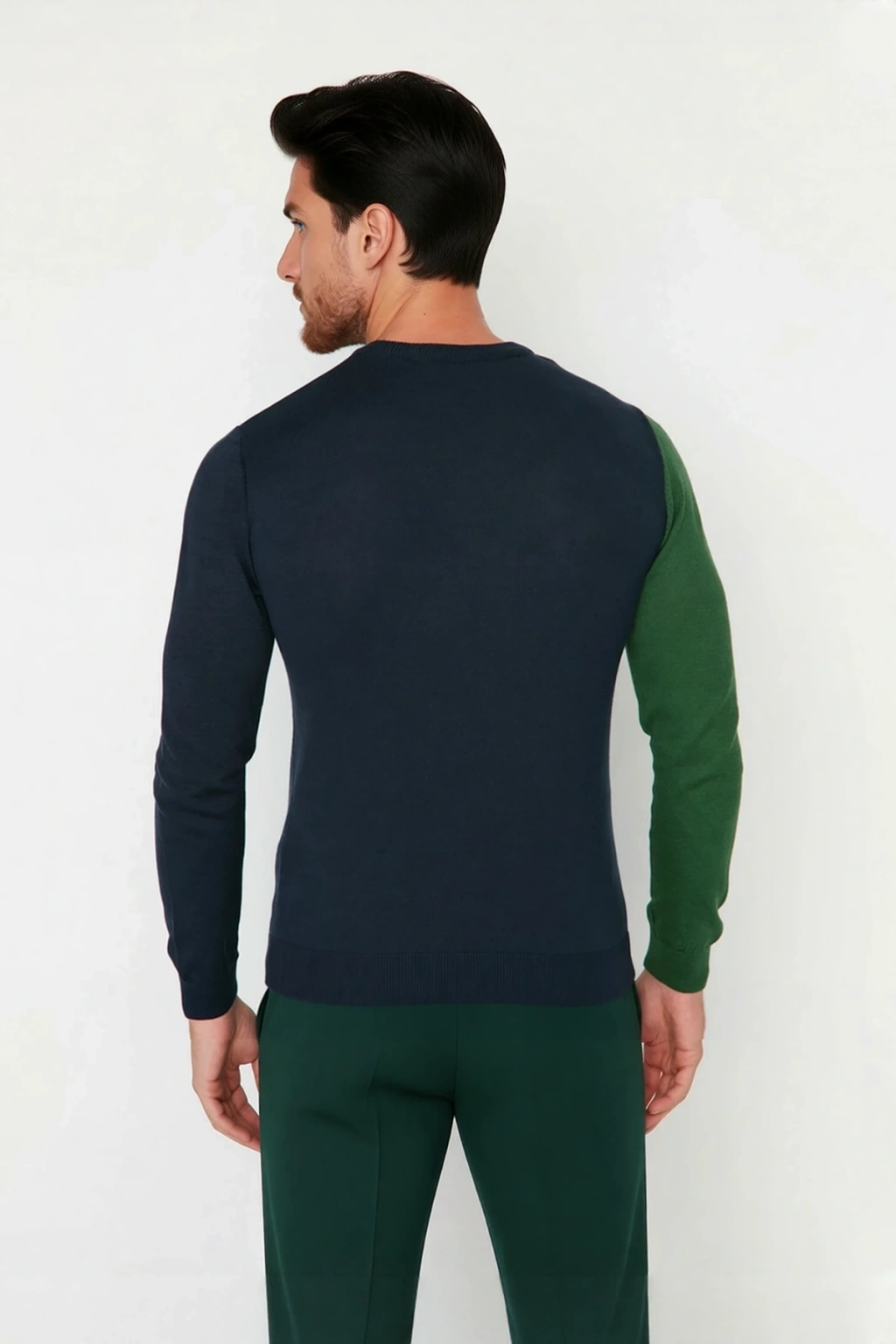 Ürün Özellikleri: Fitted kalıp, akrilik ve pamuk karışımı materyal, renk bloklu desen, bisiklet yaka, standart kol, triko kumaş, gri renk, baskısız tasarım.
