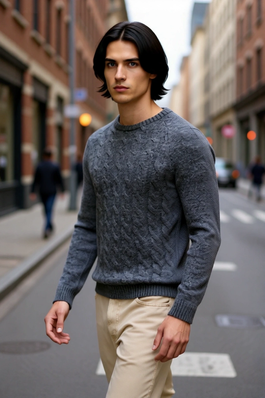 Ürün Özellikleri: Slim kalıp, akrilik polyester materyal, saç örgü desen, bisiklet yaka, standart kol, triko kumaş, gri renk.