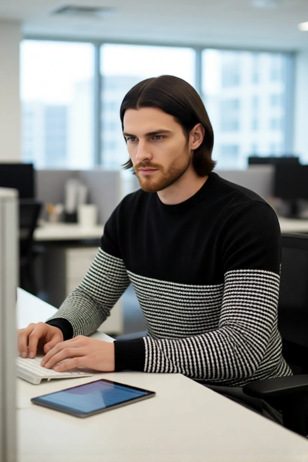 Bu erkek bisiklet yaka kazak, fitted kalıp tasarımıyla vücuda kusursuzca oturarak modern ve estetik bir siluet oluşturur. %100 akrilik materyali sayesinde son derece yumuşak bir dokuya sahip olup, soğuk kış günlerinde bile sizi sıcacık tutarak üst düzey bir konfor sunar. Lacivert rengi üzerinde yer alan zarif çizgili deseni, kazaka hareketli ve çağdaş bir görünüm kazandırırken, baskısız yüzeyi ile sade ama etkileyici bir şıklık sergiler. Cool & Comfort personasına hitap eden bu ürün, hem stil sahibi hem de rahat giyim arayan erkekler için idealdir.