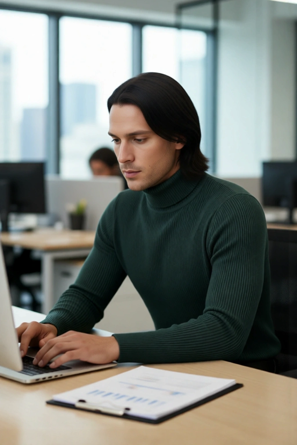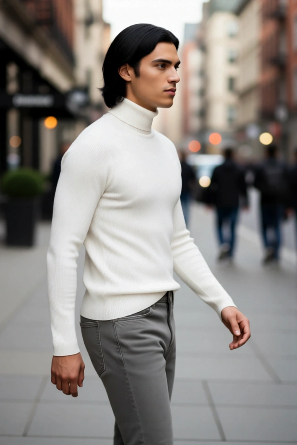 Bu fitted kazak, atletik ve normal vücut tipleri için ideal olup, çeşitli pantolon ve ceketlerle kolayca kombinlenebilir. Hem casual günlük giyimde hem de daha resmi olmayan iş ortamlarında şık bir seçenek sunar. Kış, sonbahar ve ilkbahar mevsimlerinde soğuktan korunmak ve tarzınızı yansıtmak için mükemmel bir tercihtir.