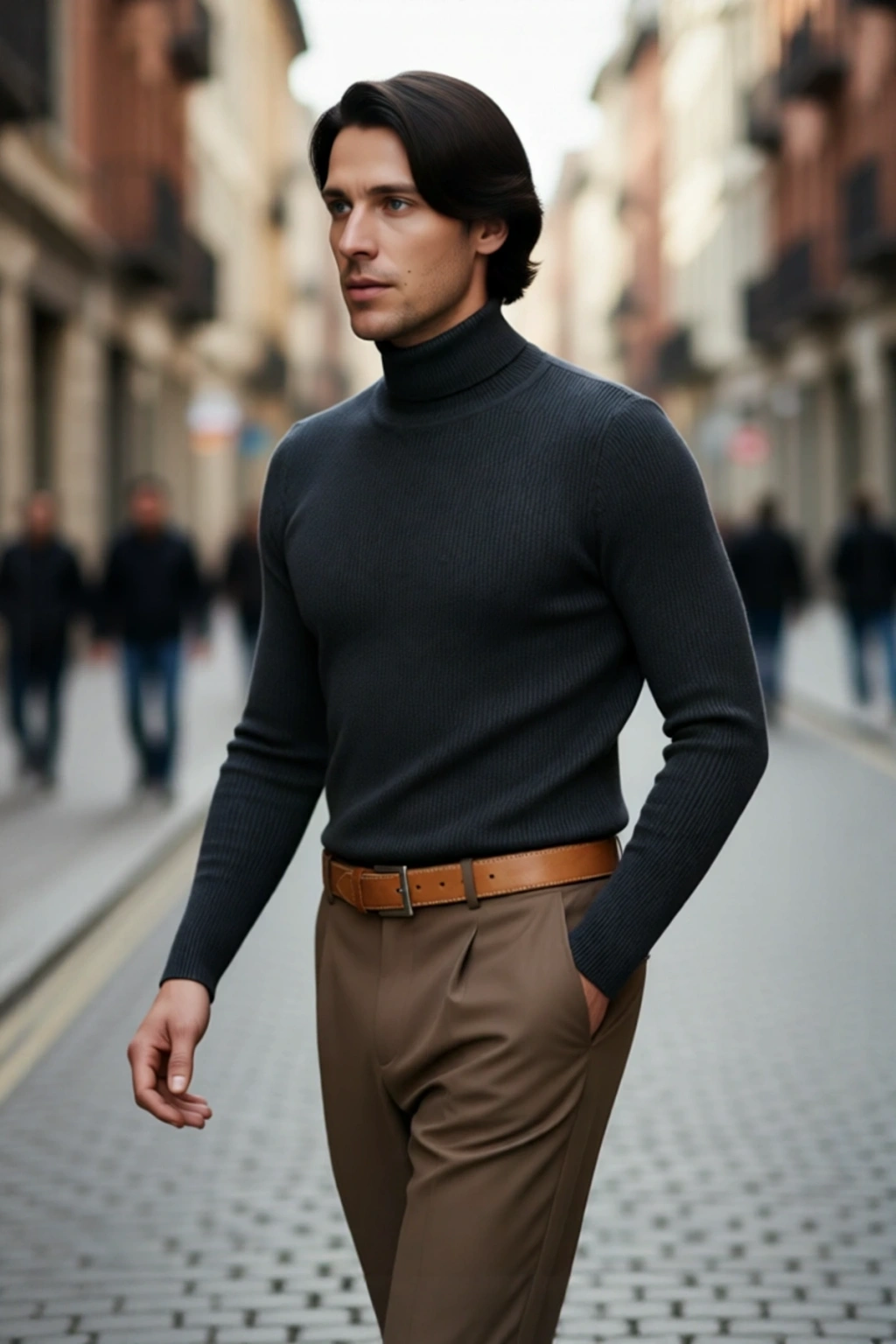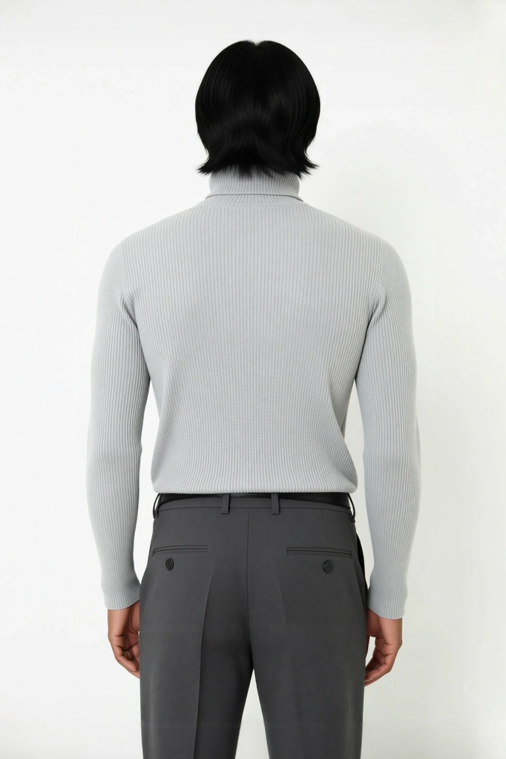 Erkekler için tasarlanmış bu fitted balıkçı yaka kazak, vücuda oturan kesimiyle modern ve zarif bir siluet oluşturur. Pamuklu ve polyesterin ideal karışımından üretilen materyali sayesinde hem yumuşak bir dokunuş hem de soğuk havalara karşı etkili bir koruma sağlar. Düz ve baskısız tasarımı, gri rengin zamansız çekiciliğiyle birleşerek her ortama uyum sağlayan bir şıklık sunar. Bu kazak, kış koleksiyonlarının vazgeçilmezi olup, basic ama etkileyici duruşuyla gardırobunuzun temel parçalarından biri olmaya adaydır. Fitilli dokuma tipi, ürüne zengin bir tekstür katarken, smart persona için idealdir.