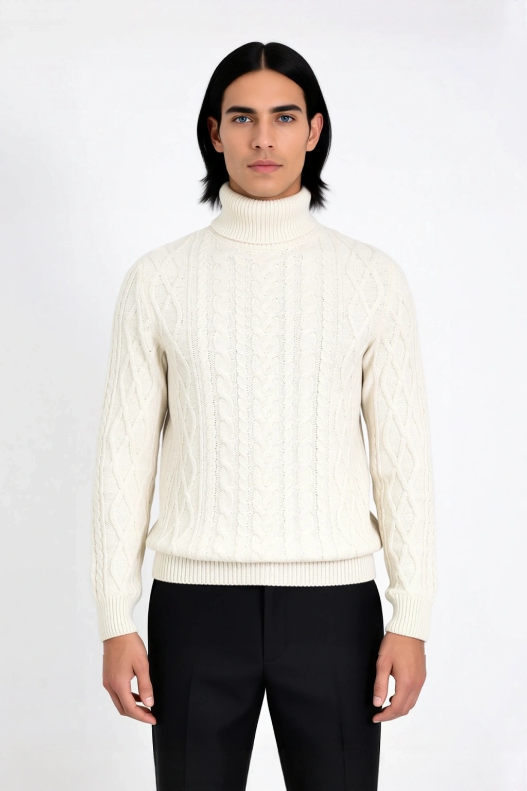 Ürün Özellikleri: Fitted kalıp, 50% Akrilik, 40% Polyester, 5% Yün, 5% Diğer Elyaflar materyal, saç örgü desen, balıkçı yaka, standart kol, triko kumaş, ekru renk, baskısız tasarım.