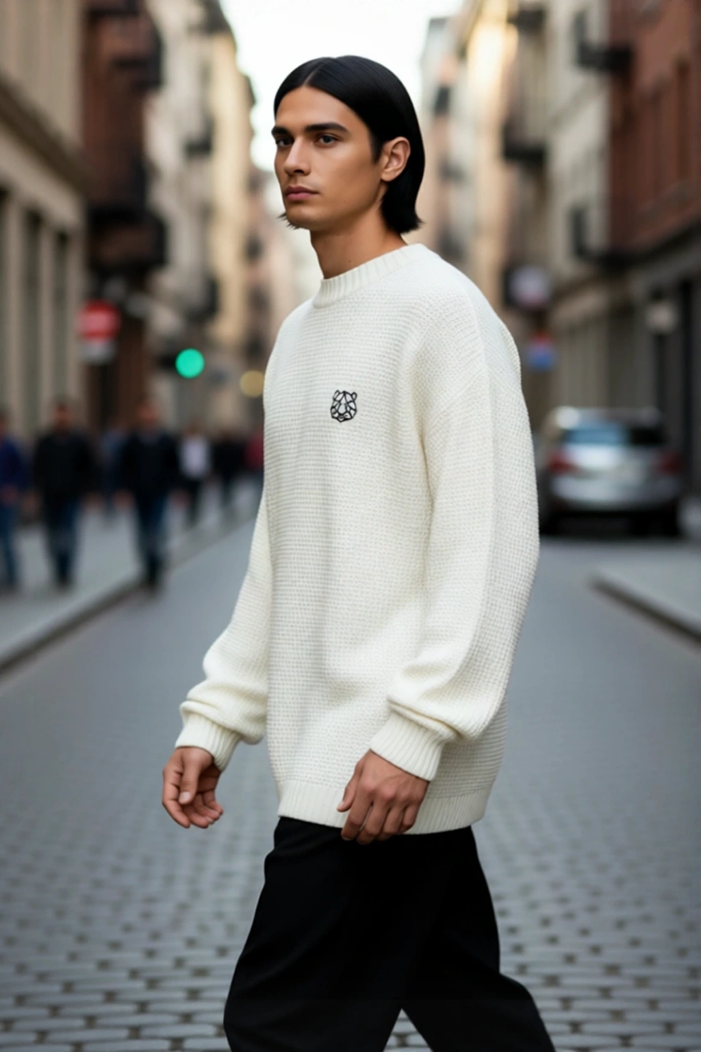 Modern erkeğin vazgeçilmezi olacak bu geniş kalıp oversize fit triko kazak, tarzınıza rahatlık ve şıklık katıyor. %100 akrilik materyalden üretilen bu parça, gün boyu yumuşaklık ve sıcaklık vaat ederken, ekru rengi ve sargı nakış tekniğiyle işlenmiş göz alıcı geometrik hayvan deseniyle fark yaratır. Orta kalınlıktaki yapısı sayesinde soğuk günlerde konforlu bir kullanım sunar. Casual ve günlük giyim için ideal olan bu kazak, özgün tasarımıyla kişisel stilinizi ön plana çıkarır.