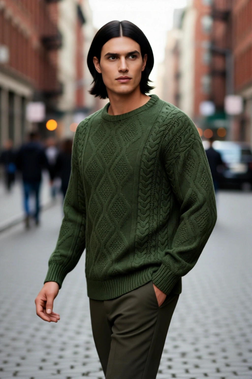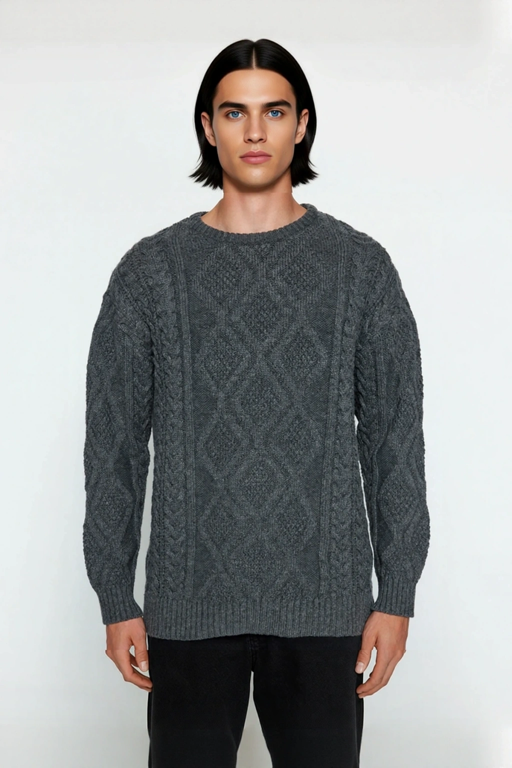Bu erkek oversize kazak, modern ve rahat bir stil arayanlar için tasarlandı. Geniş kalıbı sayesinde gün boyu hareket özgürlüğü ve üstün konfor sunar. Yüksek kaliteli akrilik ve polyester materyal bileşimi (%60 Akrilik, %40 Polyester) yumuşak bir dokunuş sağlarken, soğuk kış günlerinde sizi sıcak tutar. Saç örgü deseni, kazağa klasik ve şık bir hava katarak gardırobunuzun vazgeçilmez parçası olmasını sağlar. Beyaz rengi ise her türlü kombinle kolayca uyum sağlayarak çok yönlü kullanım imkanı sunar. Baskısız ve düz tasarımıyla sade şıklığı ön plana çıkarır.