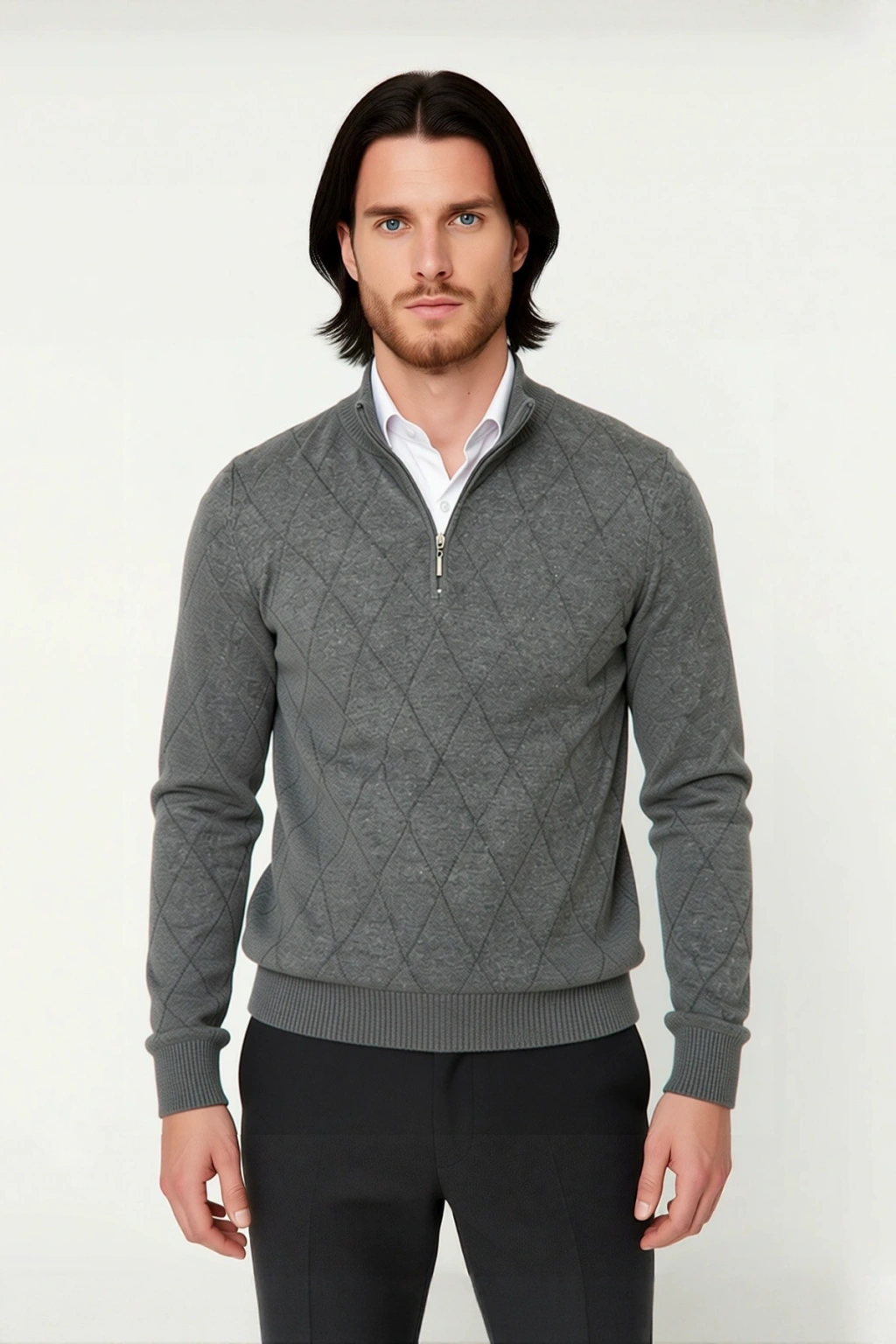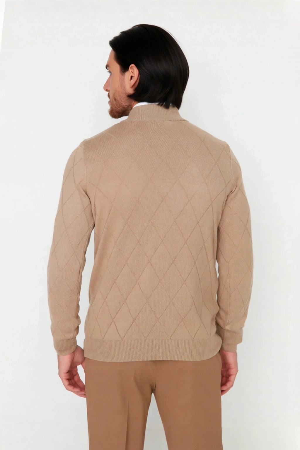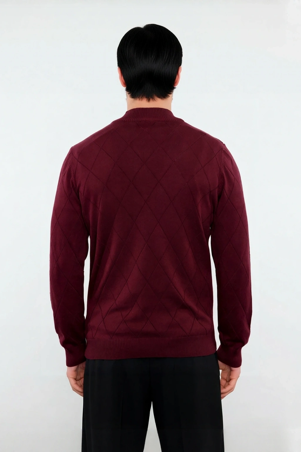 Bu bordo renkli erkek triko kazak, regular kalıbı ile gün boyu rahatlık ve şık bir duruş vaat ediyor. Yüksek kaliteli %50 pamuk ve %50 akrilik materyal bileşimi sayesinde hem yumuşak bir dokunuş sunar hem de kış aylarının soğuklarına karşı ideal bir koruma sağlar. Baklava desenli yapısı, baskısız ve düz tasarımıyla klasik zarafeti modern bir dokunuşla birleştirir. Fermuar detaylı yarım balıkçı yaka tasarımı, kullanımı kolaylaştırırken stilinize dinamik bir hava katarak, casual ve günlük kombinlerinizde akıllı bir tercih olmanızı sağlar. Bu kazak, soğuk günlerde bile size üstün konfor sunmak için özenle tasarlanmıştır.