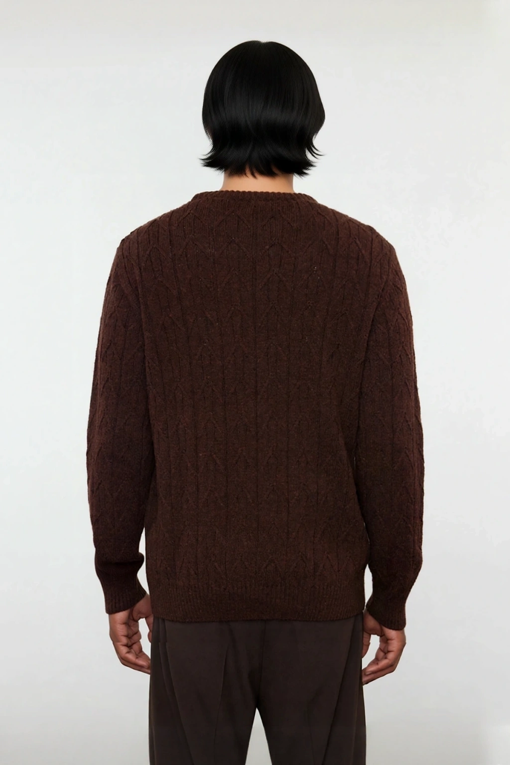 Ürün Özellikleri: Regular kalıp, %60 akrilik %40 polyester materyal, dokulu desen, bisiklet yaka, standart kol, triko kumaş, kahverengi renk, ince kalınlık.