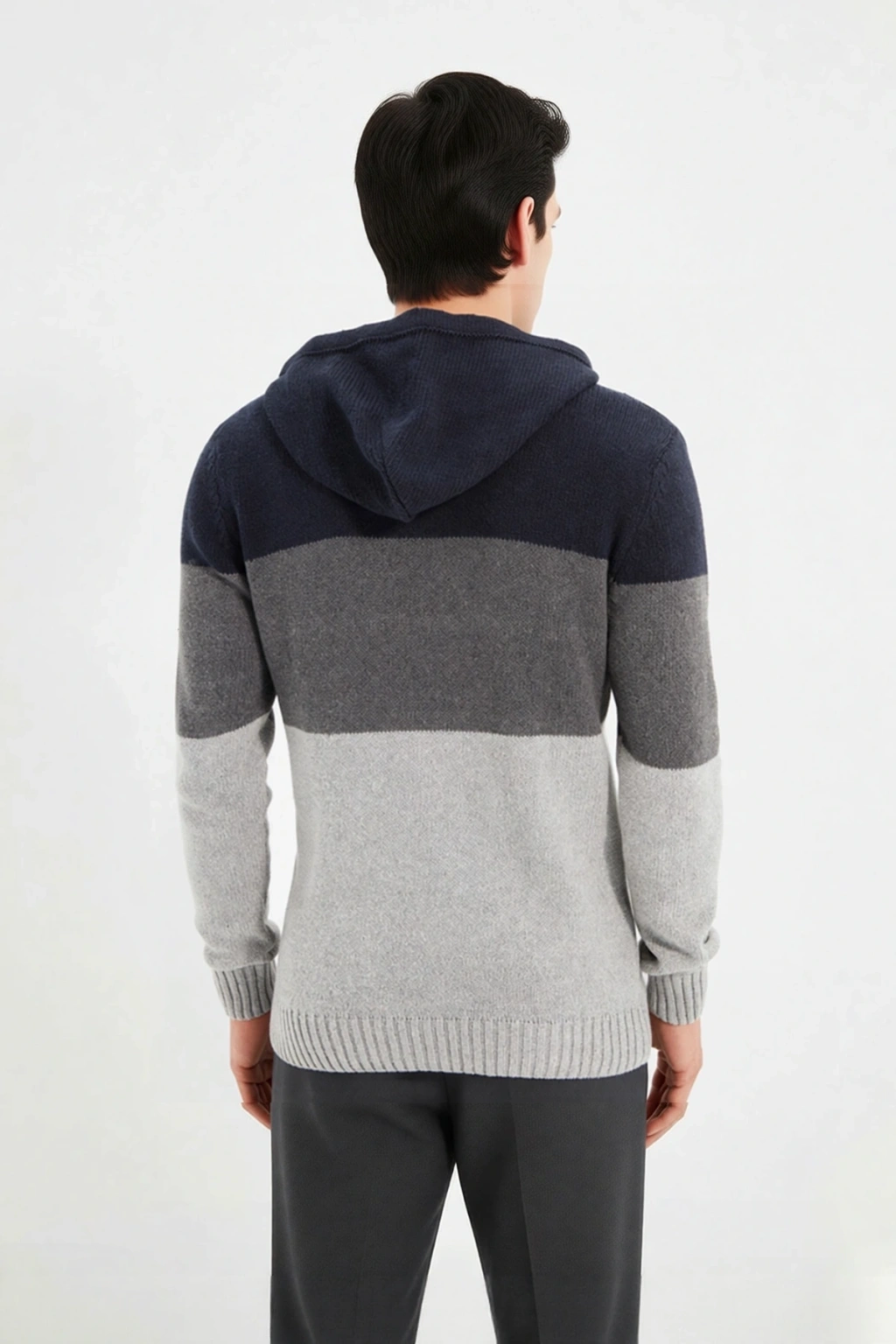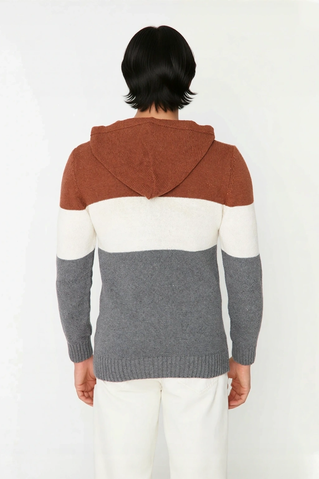 Erkekler için tasarlanan bu şık triko kazak, kapüşonlu yaka tipi ve renk bloklu deseniyle göz alıcı bir stil vaat ediyor. Regular kesimi, rahatlığı ön planda tutarak hareket özgürlüğü sağlarken, aynı zamanda modern bir siluet oluşturur. Materyal bileşimindeki akrilik, polyester, viskoz, pamuk ve yün karışımı sayesinde hem sıcak tutar hem de cilde yumuşak bir dokunuş sunar. Ekru, açık kahve ve koyu kahve tonlarındaki renk blokları, kazaka modern ve dinamik bir hava katarken, baskısız yüzeyi sade ve zarif bir görünüm sunar.