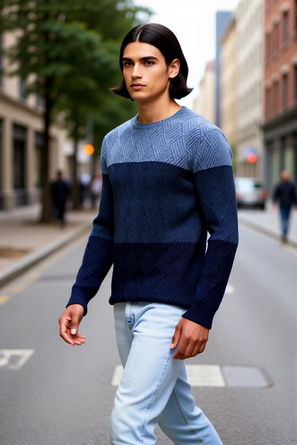 Bu erkek triko kazak, regular kalıbı sayesinde rahat ve modern bir giyim deneyimi sunar. Göz alıcı renk bloklu deseni ve lacivert rengin farklı tonlarıyla stilinize dinamik bir hava katar. %100 akrilik materyalden üretilen bu kazak, kış ve sonbahar aylarında üstün bir sıcaklık sağlarken, aynı zamanda teninize nazik dokunuşlar sunar. Basic silueti ile her erkeğin gardırobunda bulunması gereken bu parça, Cool & Comfort persona için idealdir; şıklığı ve konforu bir arada arayanlara hitap eder.