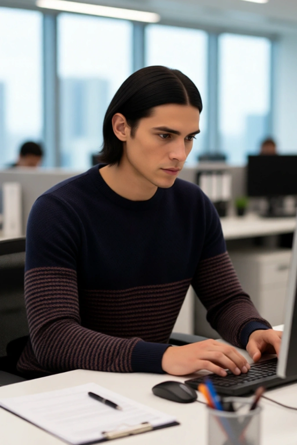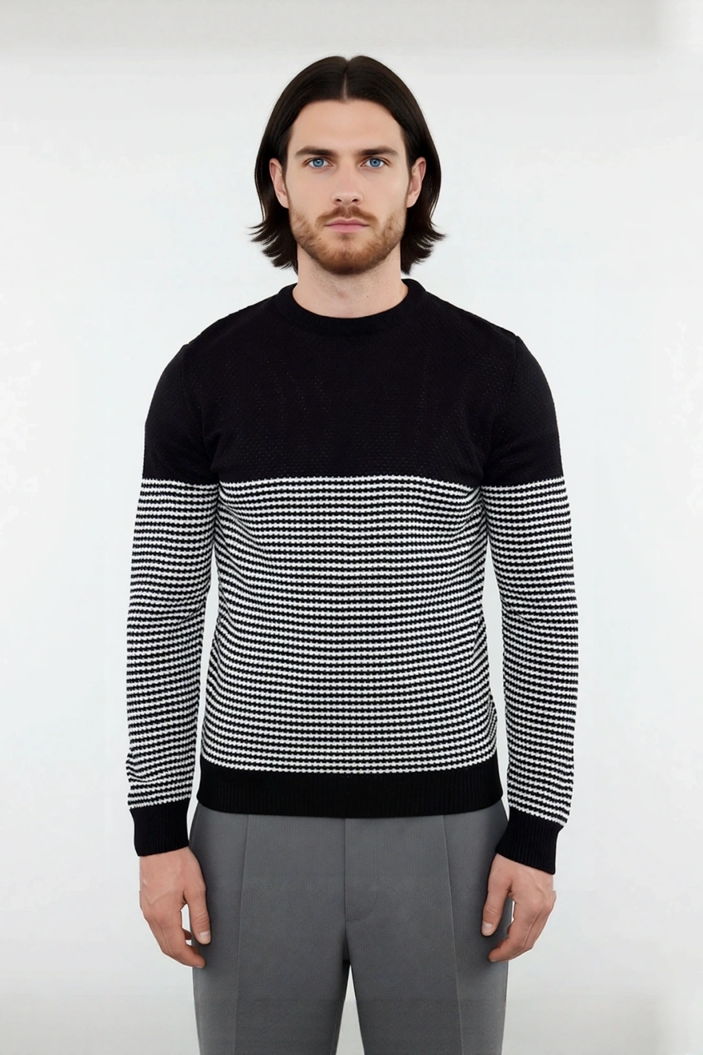 Erkekler için tasarlanan bu uzun kol triko kazak, fitted kalıbı sayesinde vücuda kusursuzca oturarak sofistike ve modern bir görünüm sunar. %100 akrilik materyalden üretilmesi, kazanın hafif, yumuşak ve alerjik olmayan bir yapıya sahip olmasını sağlar; böylece soğuk havalarda bile üstün ısı yalıtımı ve gün boyu süren konforu garantiler. Lacivert zemin üzerine yerleştirilmiş estetik çizgili deseni, bu ürüne çağdaş bir dokunuş katarken, baskısız ve düz tasarımıyla zarif bir şıklık vurgusu yapar. Cool & Comfort personasını yansıtan bu kazak, stil ve rahatlığı ön planda tutan erkekler için ideal bir tercihtir.