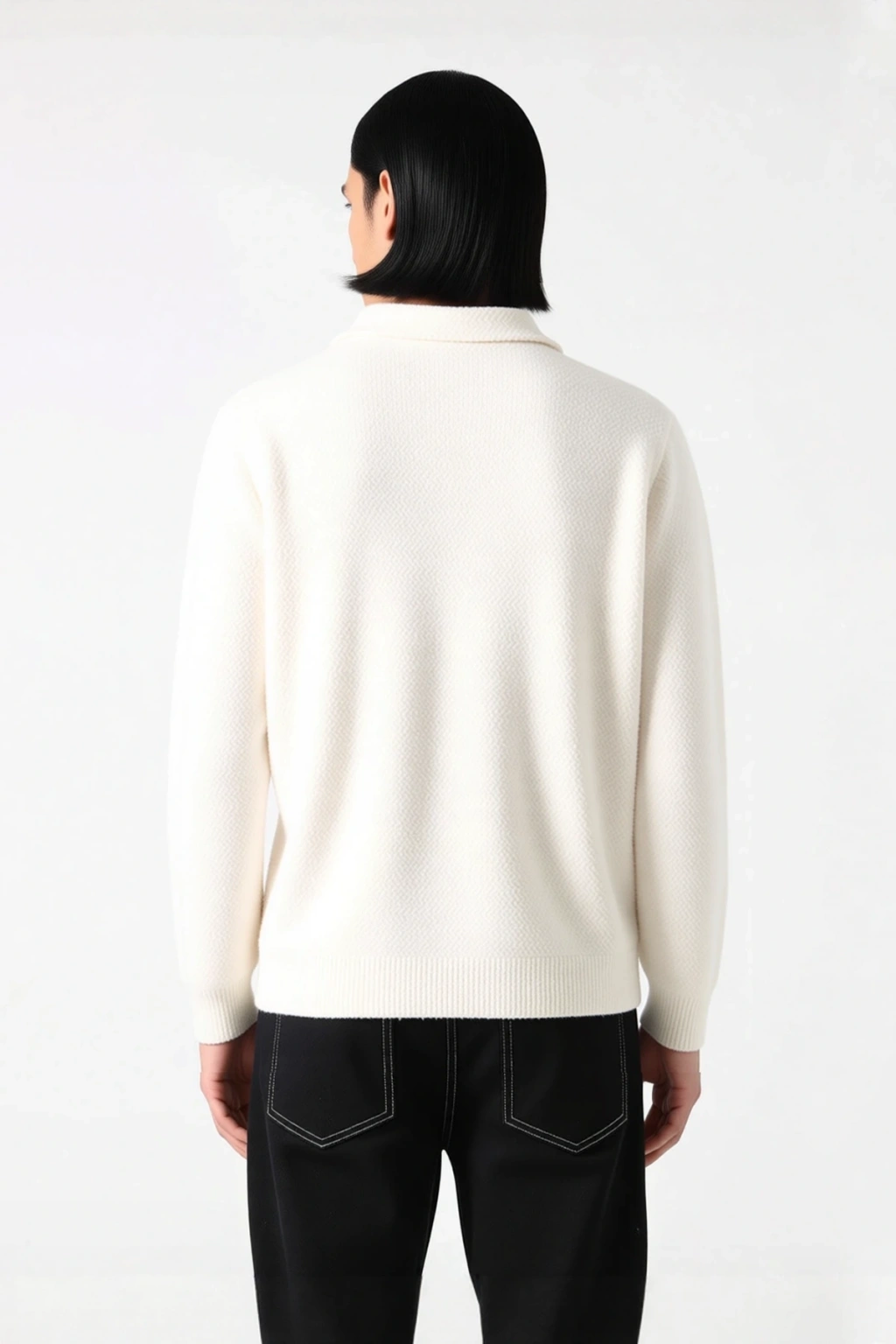 Ürün Özellikleri: Regular kalıp, Polyester Pamuk Elastan Karışımı materyal, dokulu desen, polo yaka, standart kol, triko kumaş, ekru renk, basic siluet.