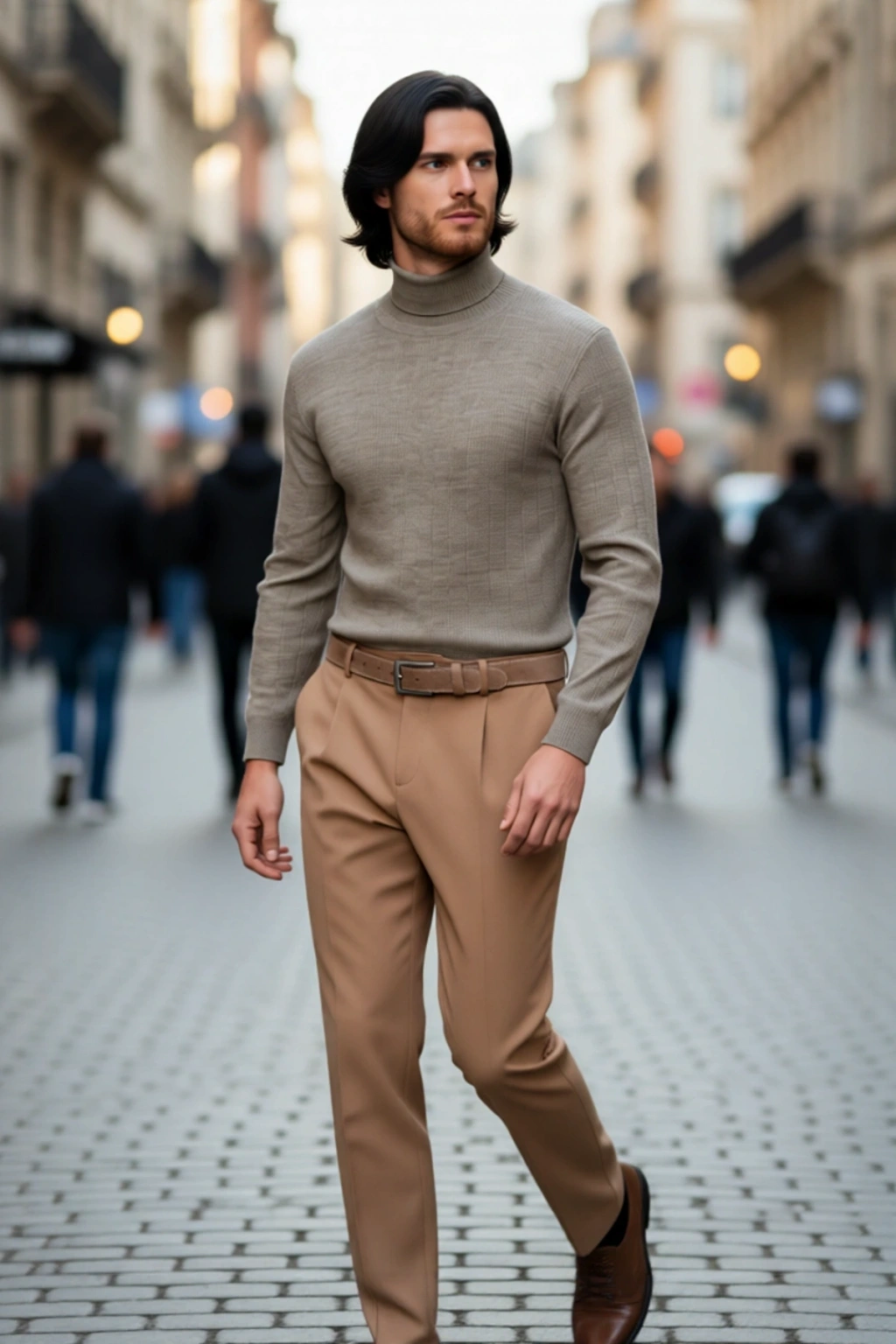 Bu erkek düz desen balıkçı yaka triko kazak, regular kalıbı ile modern erkeğin rahatlık ve şıklık arayışına cevap verir. Yüksek kaliteli akrilik materyali sayesinde kış sezonunda sizi sıcak tutarken, yumuşacık dokusuyla gün boyu eşsiz bir konfor sağlar. Zamansız bej rengi ve sade düz deseni, gardırobunuzdaki her renk ve stildeki parçayla kolayca uyum sağlayarak sınırsız kombin seçeneği sunar. Baskısız ve minimalist tasarımı, zarafeti ön plana çıkarır ve smart persona stilinize mükemmel bir katkıda bulunur. Basic silueti ile her zaman tercih edilebilir.