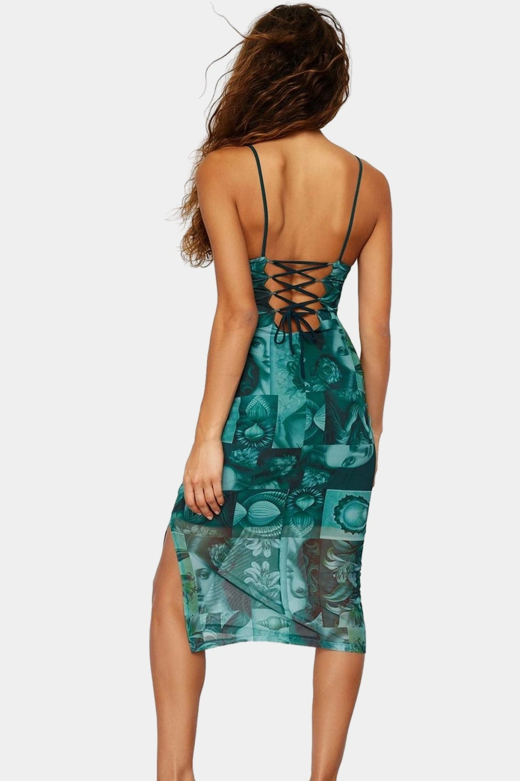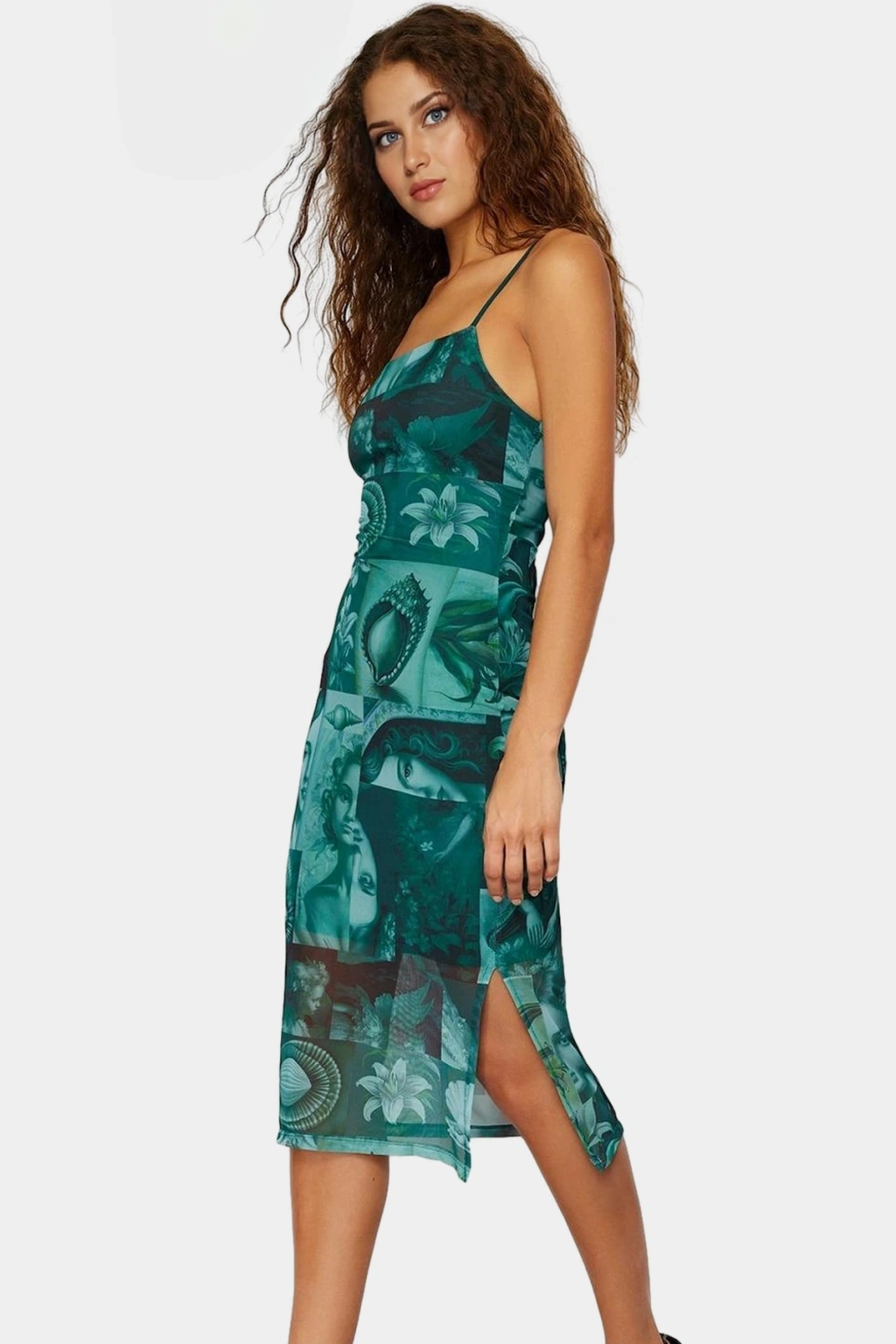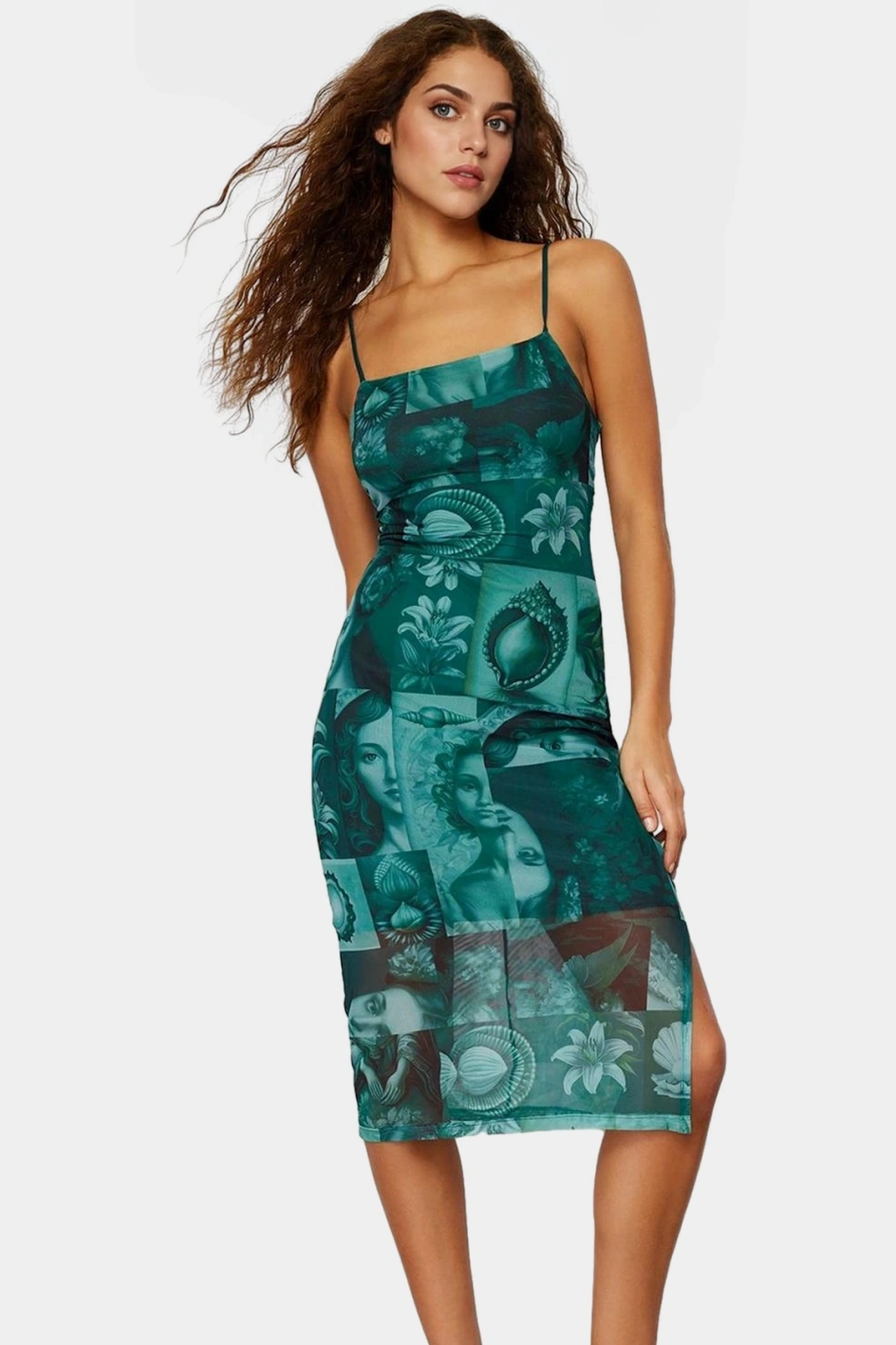 Yaz aylarının şıklığını ve rahatlığını bir araya getiren bu midi elbise, gardırobunuzun vazgeçilmez parçalarından biri olacak. Vücuda oturan kalıbı ve ince askılarıyla feminen silüetinize vurgu yaparken, nefes alabilen tül kumaş ile gün boyu konfor sunuyor. Kare yakası ve zarif tasarımıyla her ortamda göz alıcı bir görünüm elde etmenizi sağlar. Yüksek kaliteli polyester ve elastan karışımından üretilen bu elbise, son derece dayanıklı ve kolay bakımlı. Yumuşak dokusuyla teninizde hoş bir his bırakırken, esnek yapısı sayesinde hareket özgürlüğünüzü kısıtlamaz. Makinede yıkanabilir özelliğiyle pratik kullanım avantajı sunar, böylece zamandan tasarruf edersiniz. Yaz aylarının sıcak günlerinde bile rahatlıkla kullanabileceğiniz bir elbise arayışındaysanız, doğru adrestesiniz. 122 cm boyundaki midi uzunluğu, farklı vücut tiplerine ve stillere uyum sağlar. Hem günlük hem de özel davetler için ideal olan bu elbiseyi, şık topuklular veya spor ayakkabılarla kombinleyerek tarzınıza uygun bir görünüm yaratabilirsiniz. Farklı aksesuarlarla tamamlayarak görünümünüzü kişiselleştirebilir ve stilinizi özgürce ifade edebilirsiniz. - Kumaş Tipi: Örme - Materyal: Polyester - Kalıp: Bodycon - Kol Tipi: İnce Askılı - Desen: Baskılı - Yaka Tipi: Kare Yaka - Kol Boyu: Kolsuz - Ürün Detayı: Astarlı - Astar Durumu: Astarlı - Boy: Midi - Persona: Feminine - Siluet: Bodycone - Ortam: Gündüz / Gece - Dokuma Tipi: Tül - Kemer/Kuşak Durumu: Kemersiz - Sürdürülebilirlik Detayı: Hayır - Materyal Bileşeni: 94% Polyester, 6% Elastan - Sezon: Yaz - Menşei: TR - Modelin Ölçüleri: Boy: 180cm(511) Göğüs: 88cm(34in) Bel: 62cm(24in) Kalça: 92cm(36in) - Mankenin üzerindeki ürün S36 bedendir. - Model Ön Boyu: 122,0 cm