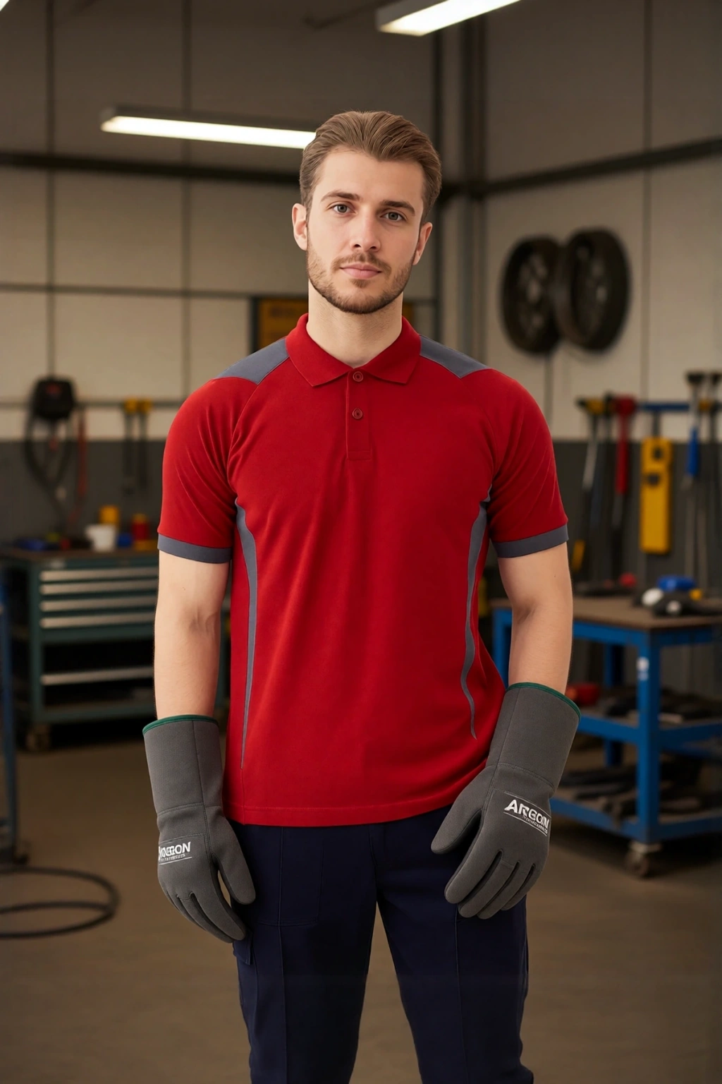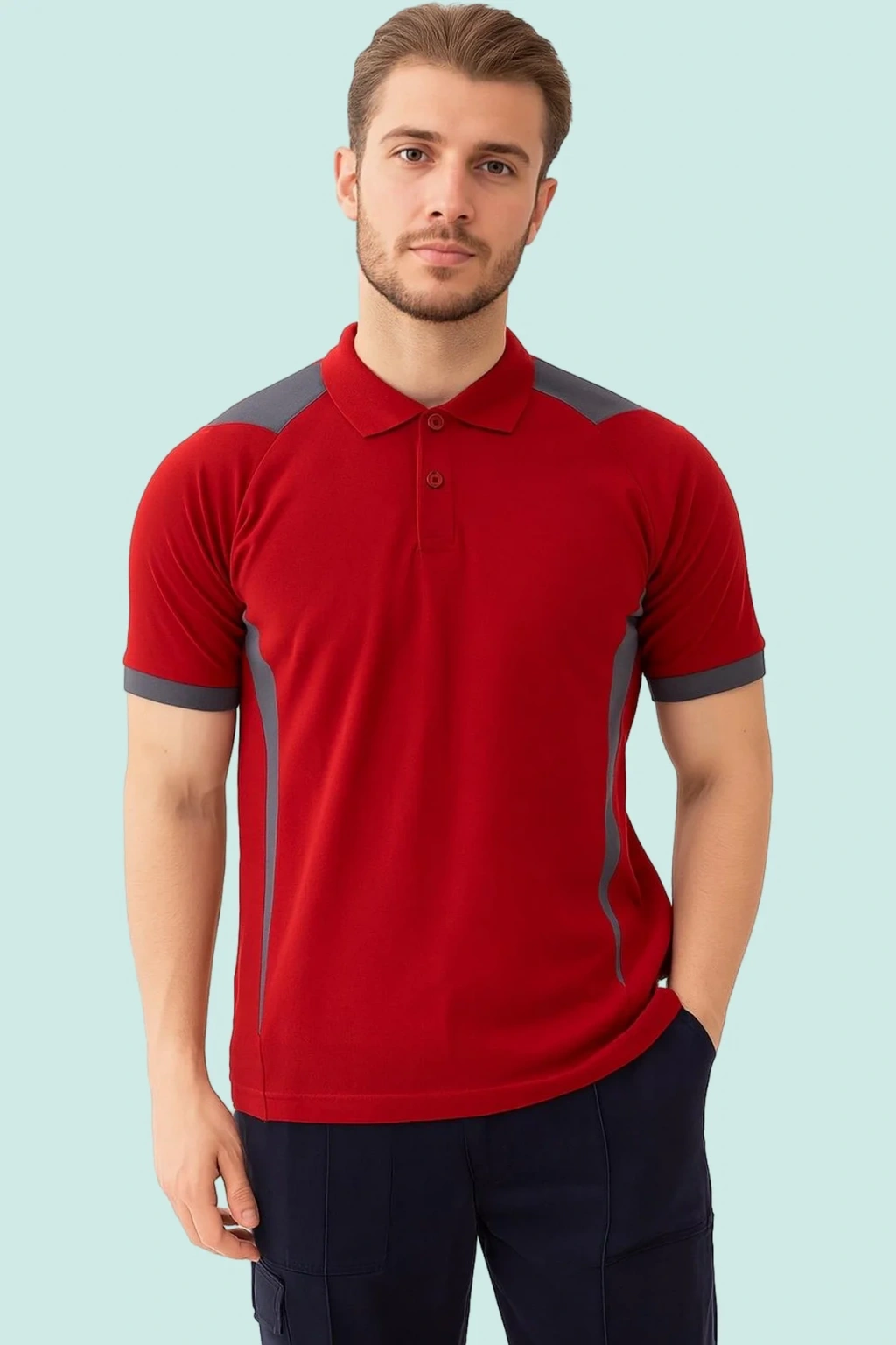 Kırmızı ve gri renk kombinasyonuyla dikkat çeken bu şık polo yaka tişört, iş güvenliği ve konforu bir araya getiriyor. Nefes alabilen yapısıyla gün boyu rahatlık sunarken, dayanıklı kumaşı sayesinde zorlu iş koşullarına da dayanıklı.
